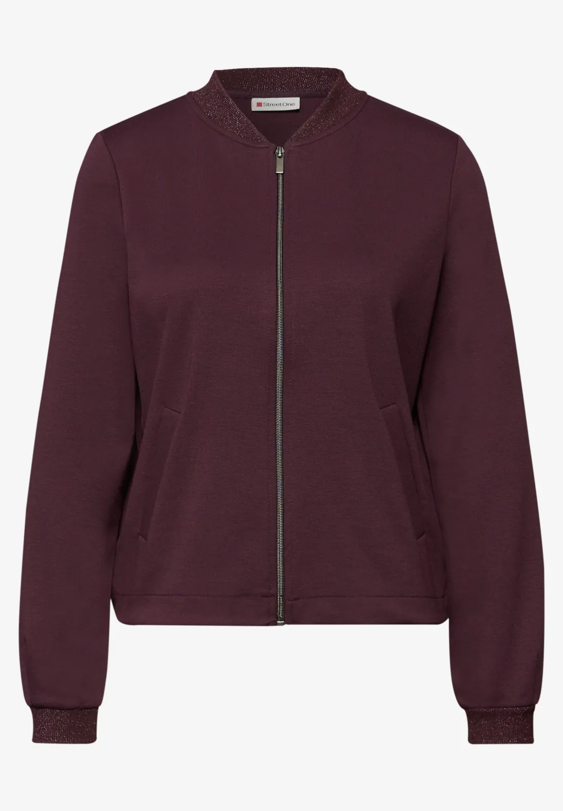 Verleihen Sie Ihrem Outfit einen modernen, femininen Touch mit diesem Street One Lightweight-Sweatjacke für Damen in der ausdrucksstarken Farbe Jazz Berry. Die Jacke begeistert mit einer trendigen Blouson-Optik und feinen Glimmerdetails, die jedem Look einen Hauch Eleganz verleihen. Ideal für lässige Outfits und vielseitig kombinierbar.