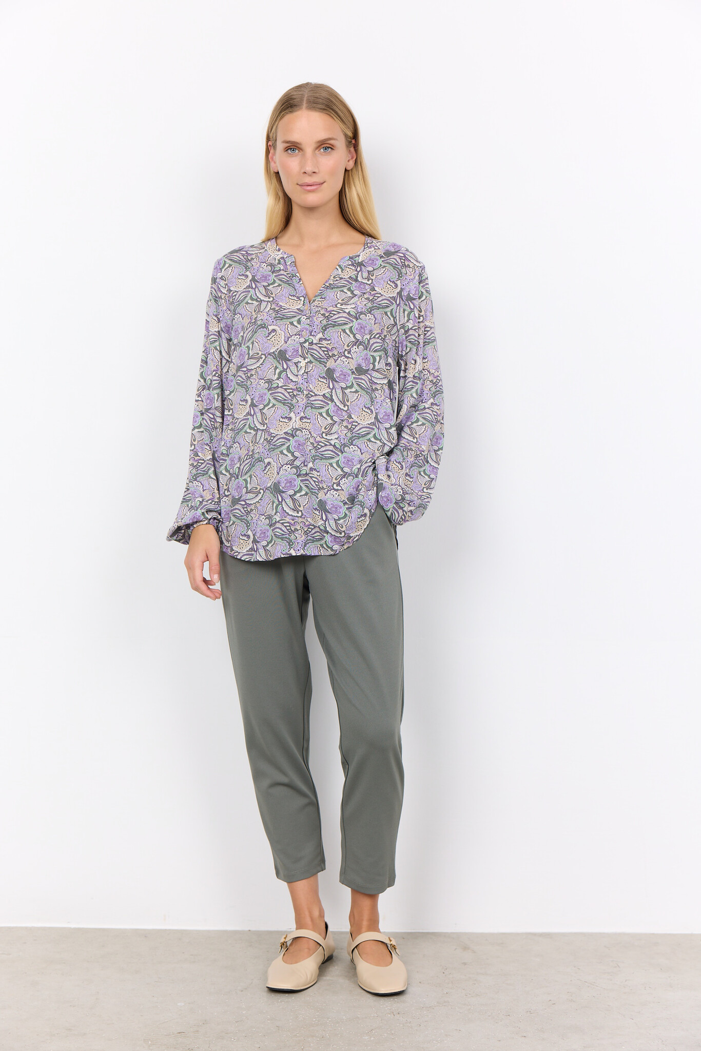 Soyaconcept SC-Adine 1. Soyaconcept Bluse mit langen Ärmeln, geschlitzter Rundhalsausschnitt und Allover Print. Die Soyaconcept Bluse ist aus nachhaltiger Viskose.
