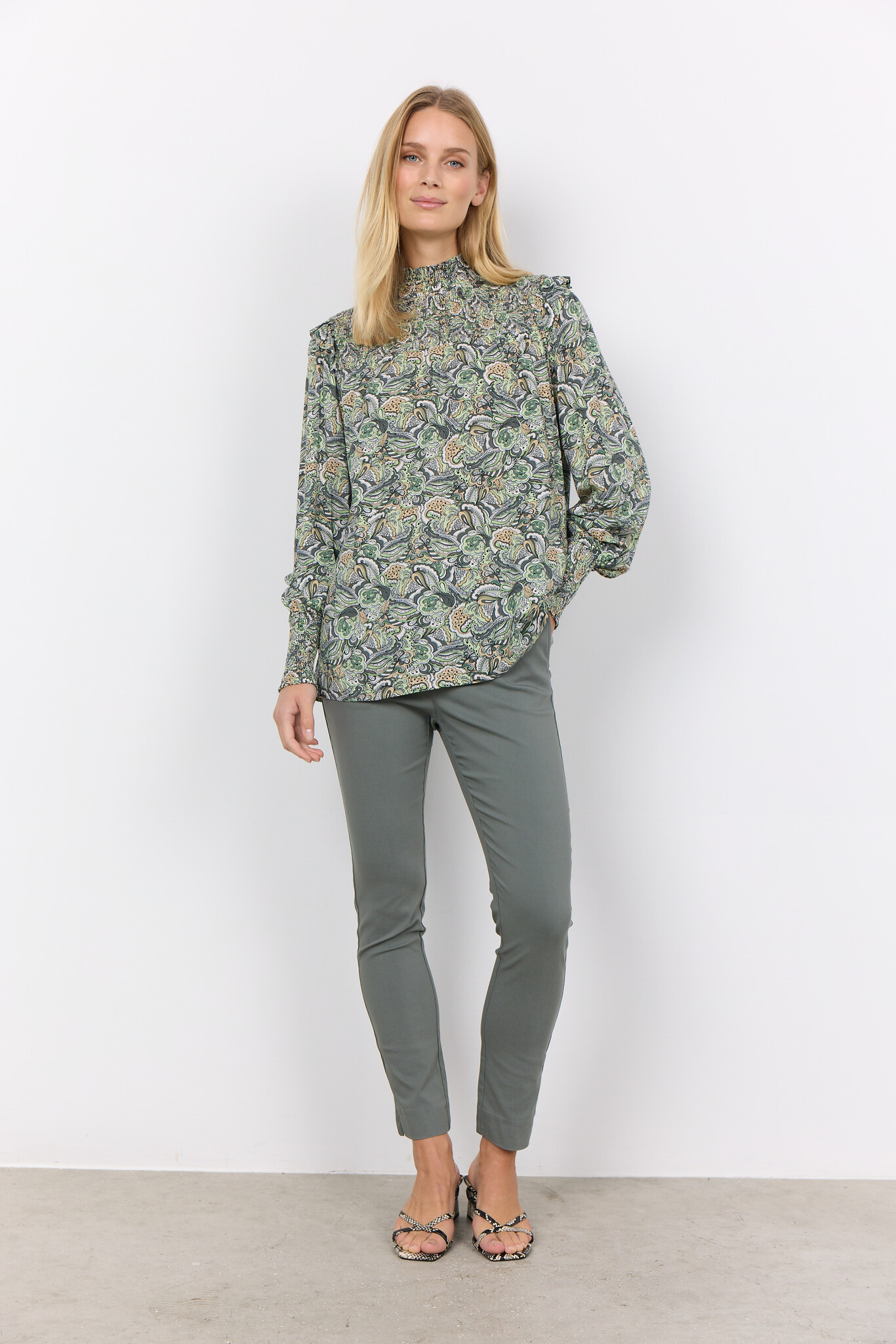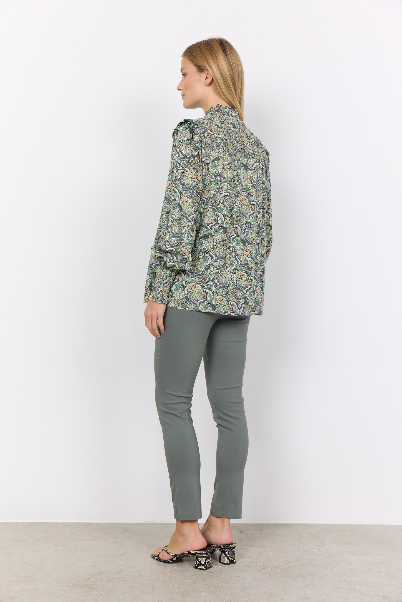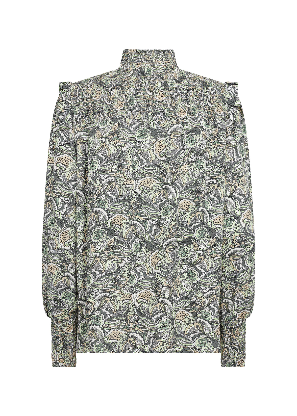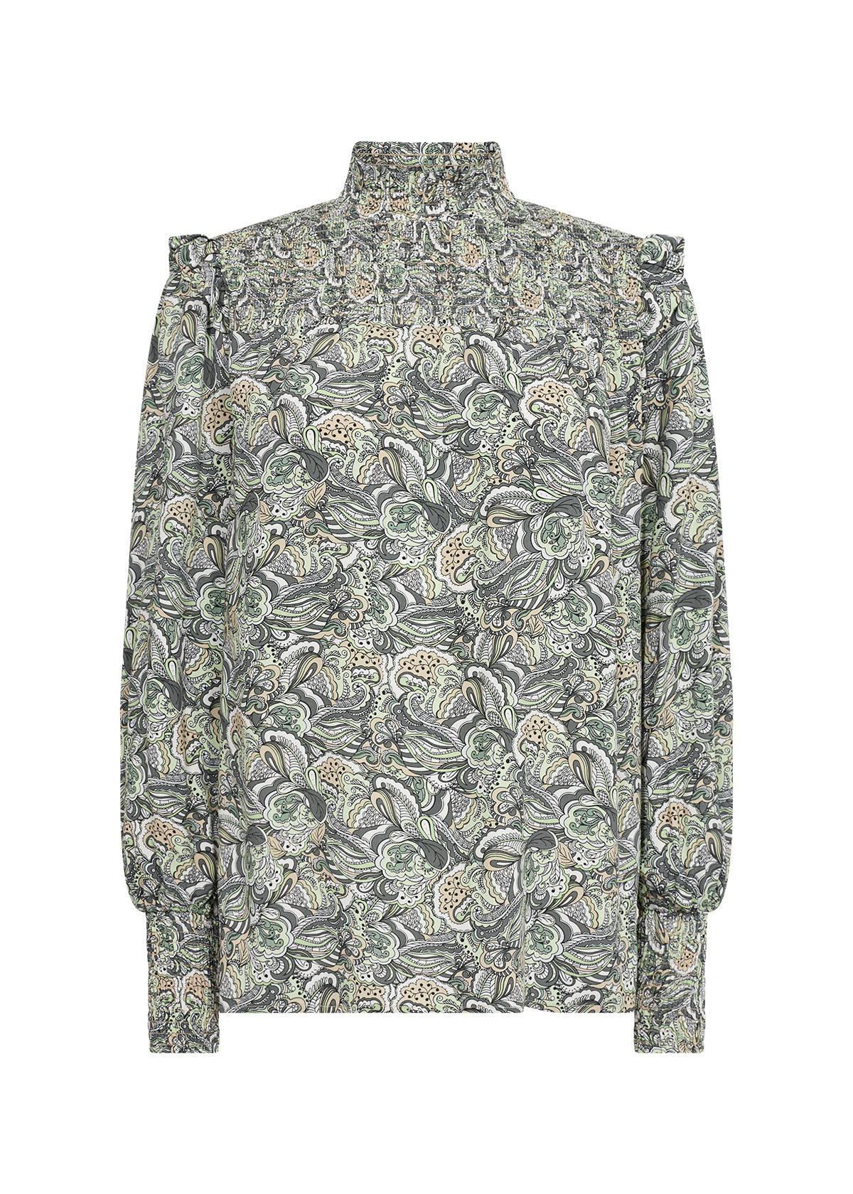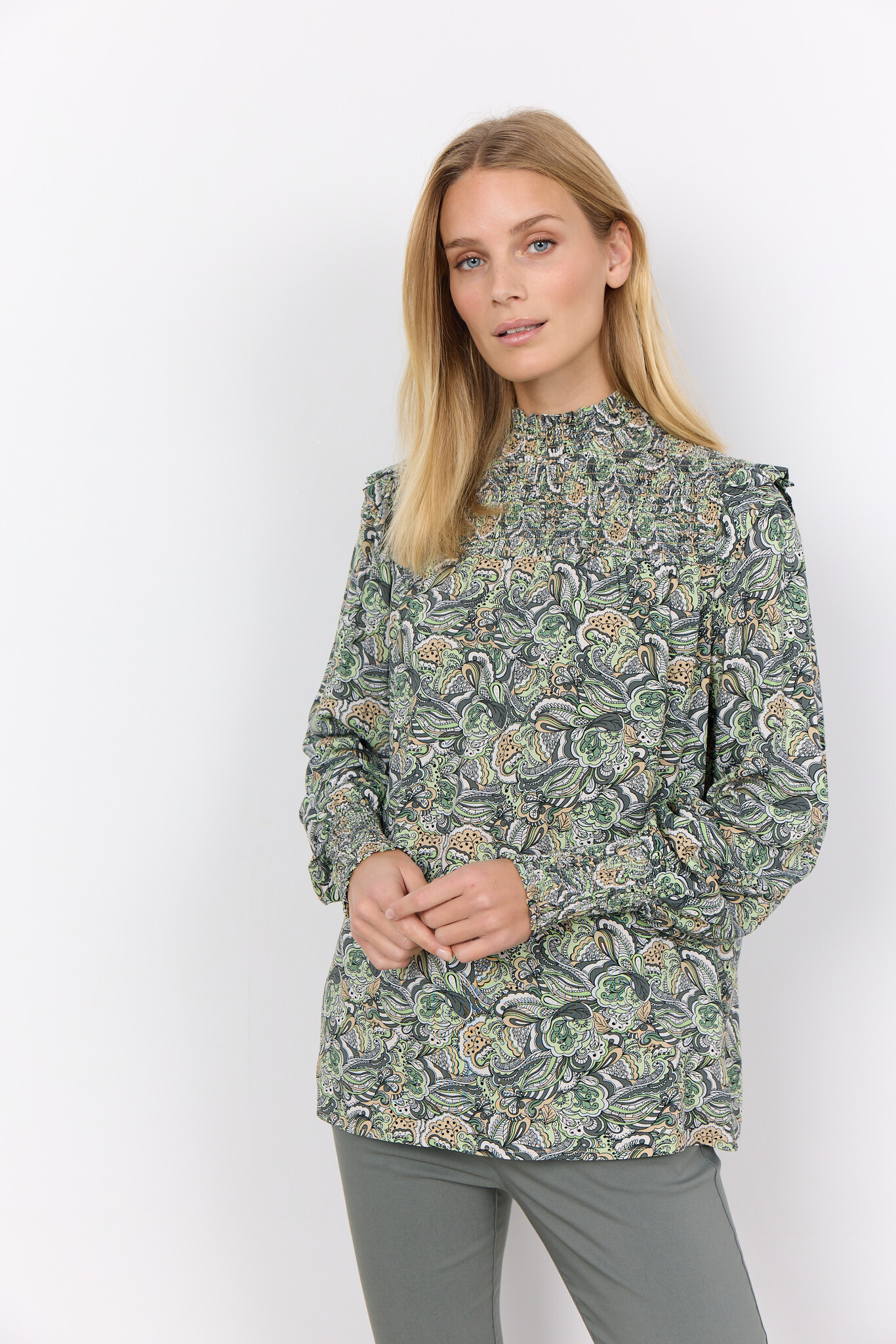 Soyaconcept SC-Adine 2. Soyaconcept Bluse mit langen Ärmeln, Allover Print und geschlossenem Ausschnitt.Die Soyaconcept Bluse hat elastische, gesmokte Details an Ärmeln und Ausschnitt. Das Schulterdetail rundet das Shirt perfekt ab.