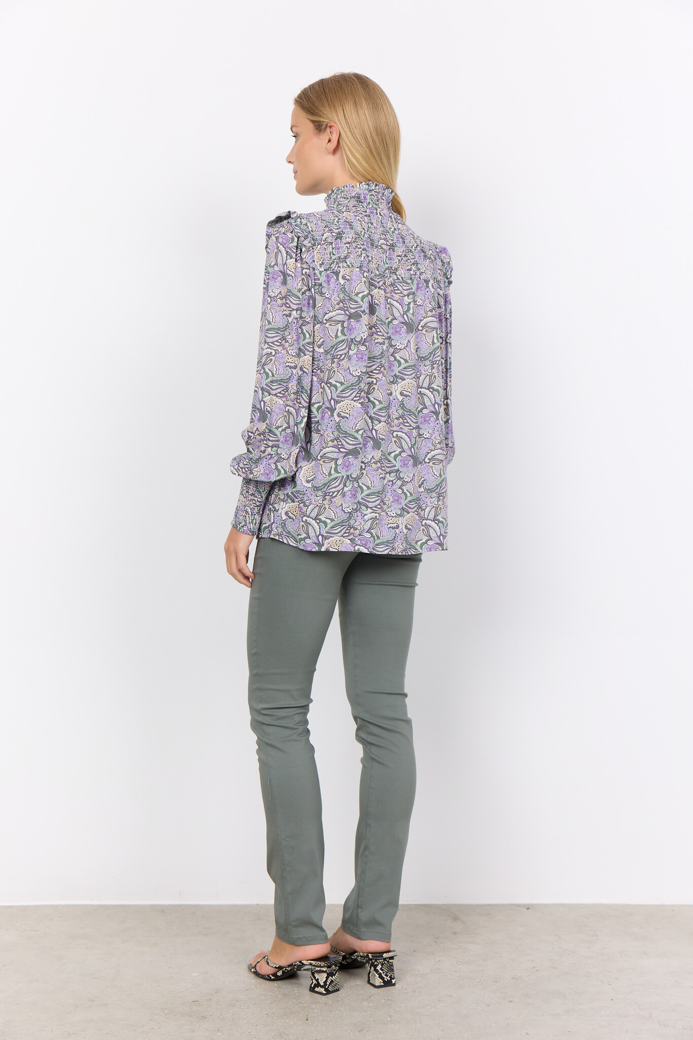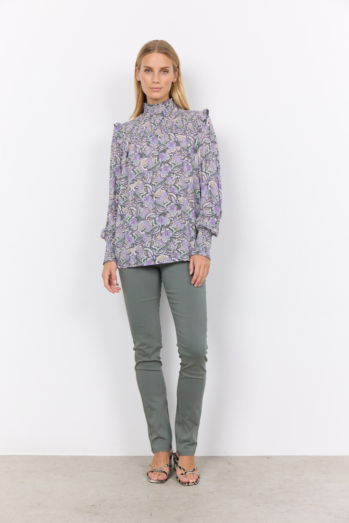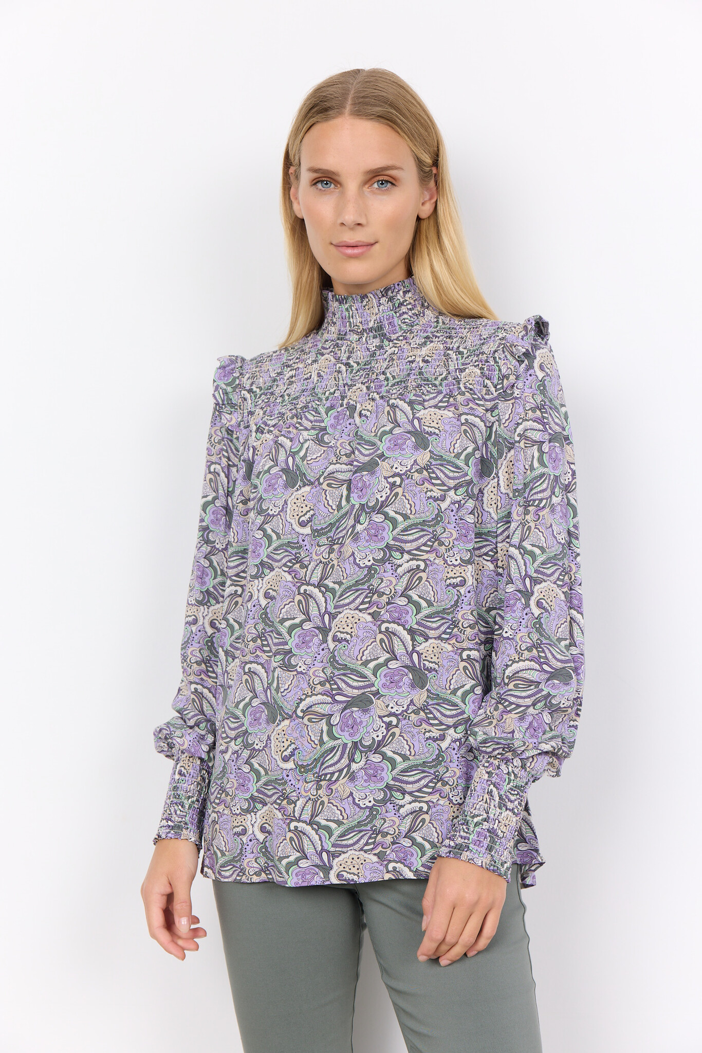 Soyaconcept SC-Adine 2. Soyaconcept Bluse mit langen Ärmeln, Allover Print und geschlossenem Ausschnitt.Die Soyaconcept Bluse hat elastische, gesmokte Details an Ärmeln und Ausschnitt. Das Schulterdetail rundet das Shirt perfekt ab.