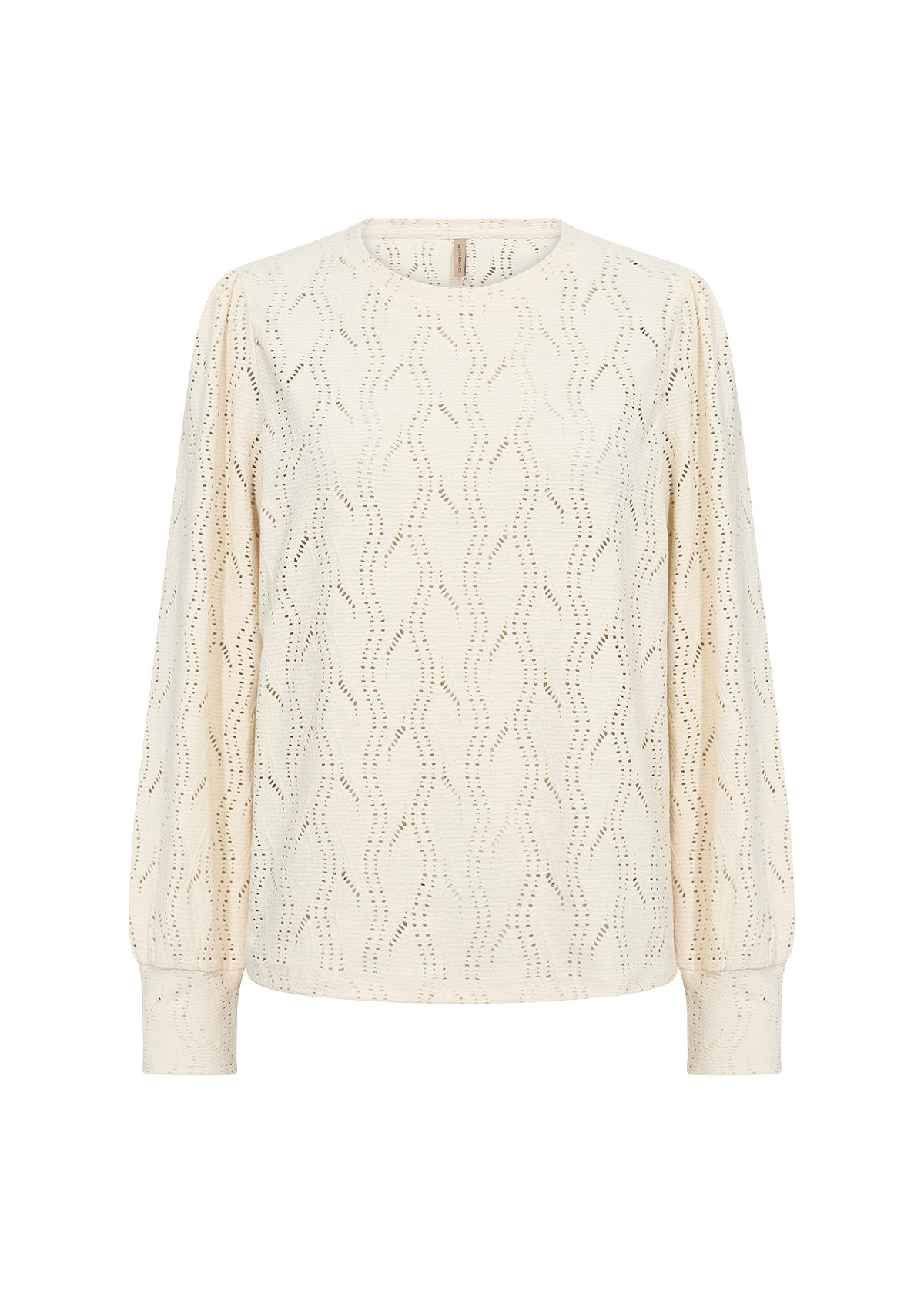 Du suchst eine feminine Bluse in einem hellen, eleganten Ton? Die SC-ATHARI 1 Bluse von Soyaconcept in stilvollem Creme kombiniert klassische Details mit nachhaltigem Komfort. Mit rundem Ausschnitt, zartem Wellenmuster und langen Ärmeln mit schmalen Bündchen ist sie ideal für einen gepflegten Look.