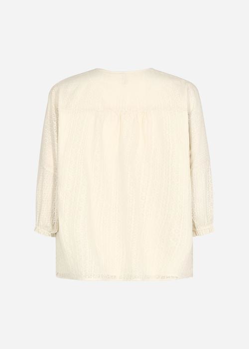 Soyaconcept SC-Ela 2. Soyaconcept Bluse mit 3/4-Ärmeln, Rundhalsausschnitt mit Schlitz und feinem Ton-in-Ton-Print. Die Ärmel sind mit elastischen Bündchen abgeschlossen.