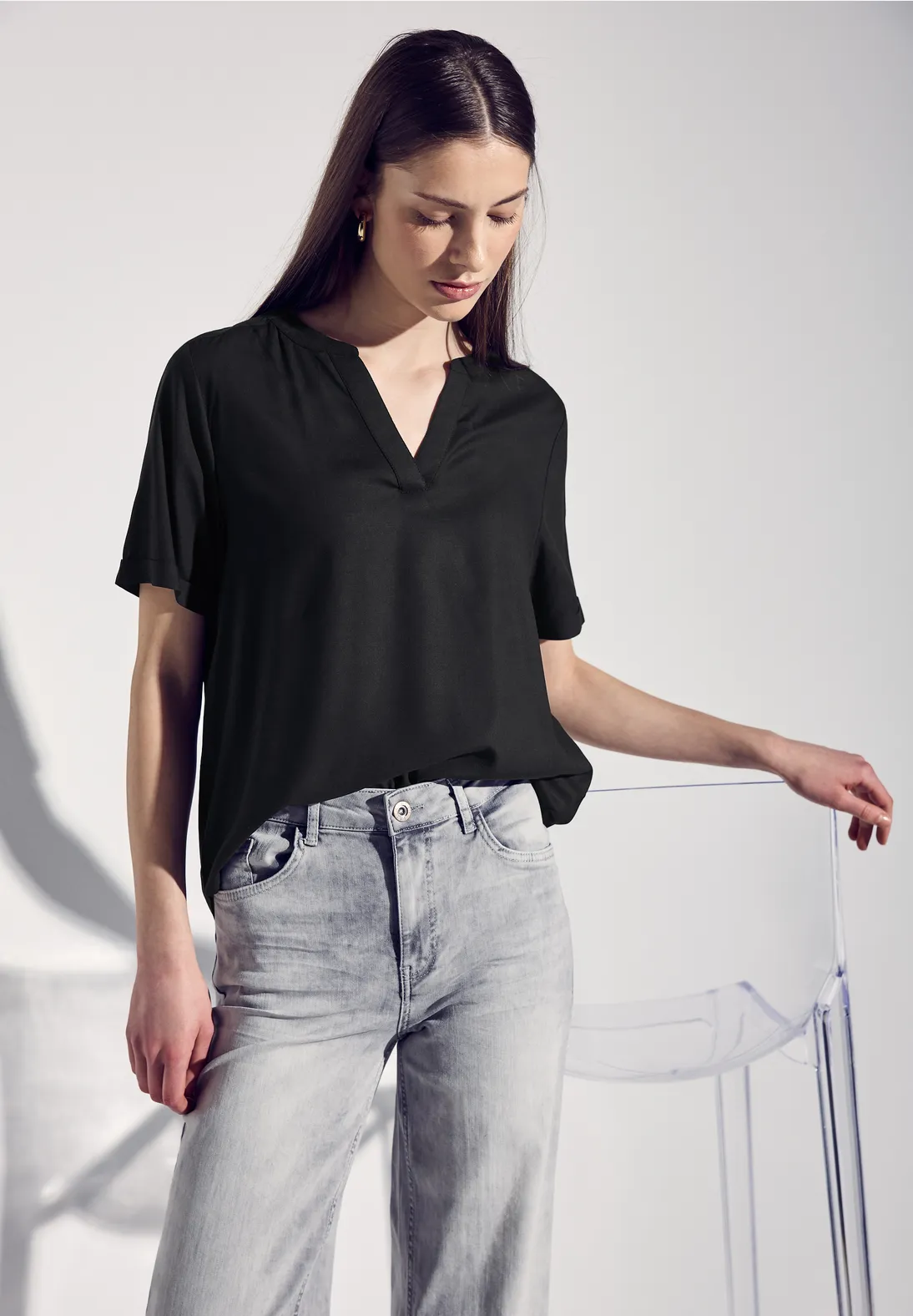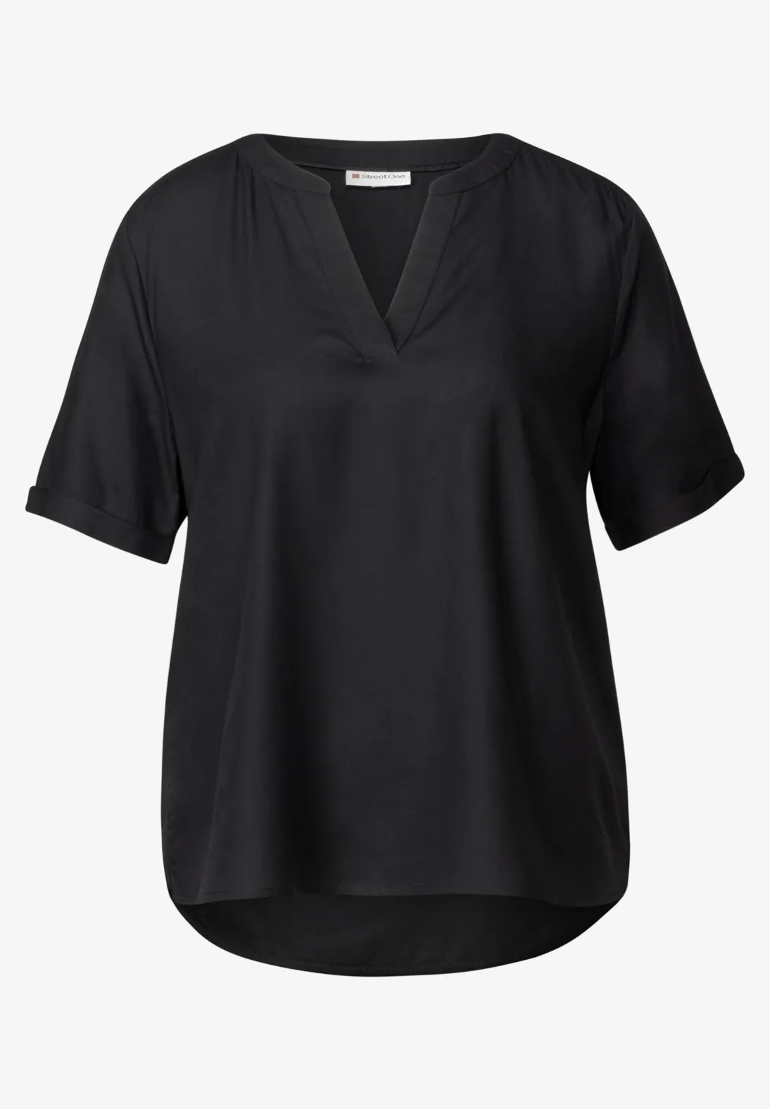 Street One Bluse mit kurzen Ärmeln und Rundhalsausschnitt mit Schlitz. Die Street One Bluse ist einfach zu kombinieren und aus weicher Viskose.