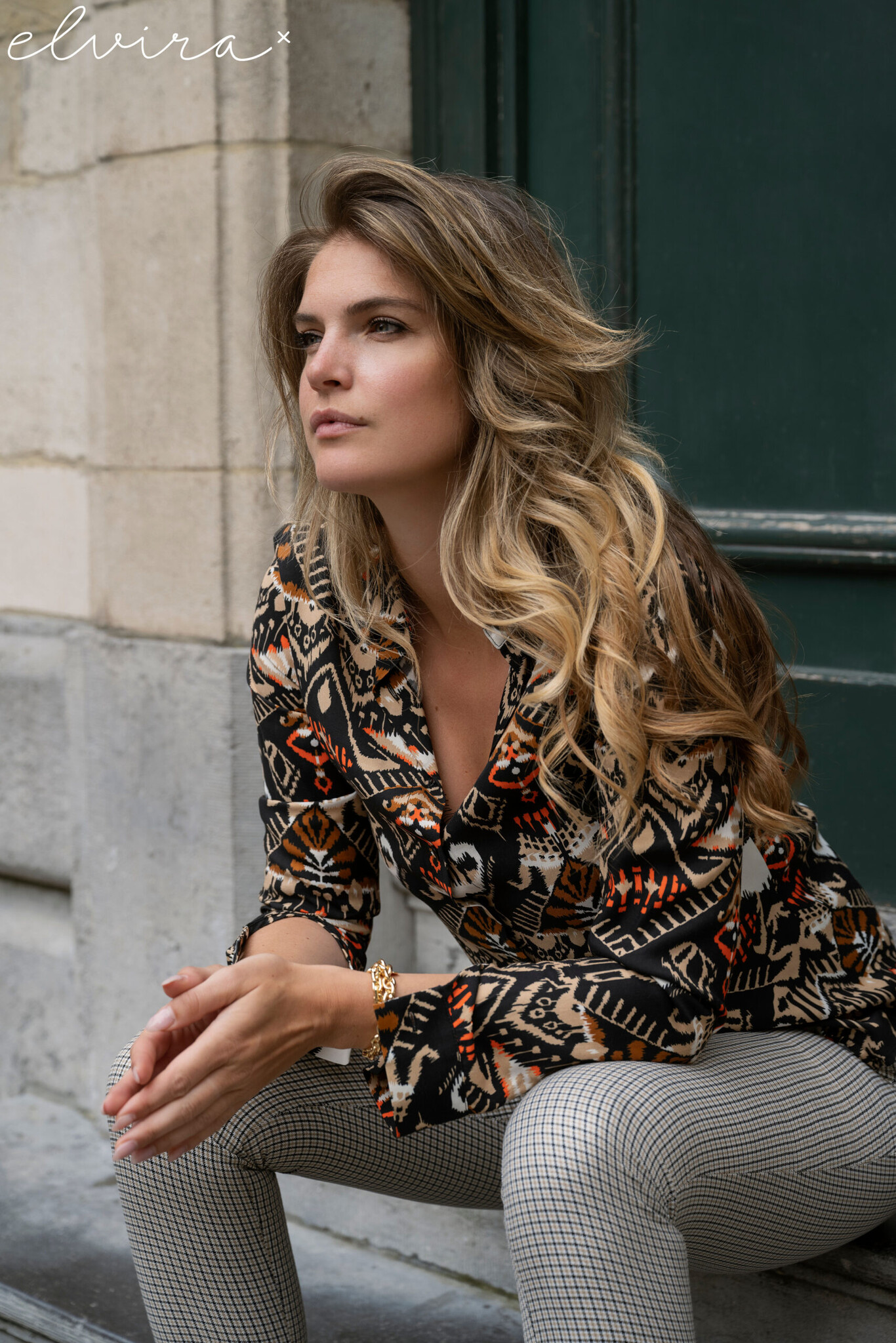 Elvira Collections Ivy. Elvira Collections Bluse mit langen Ärmeln und Hemdkragen. Die Elvira Collections Bluse kommt mit durchgehender Knopfleiste.