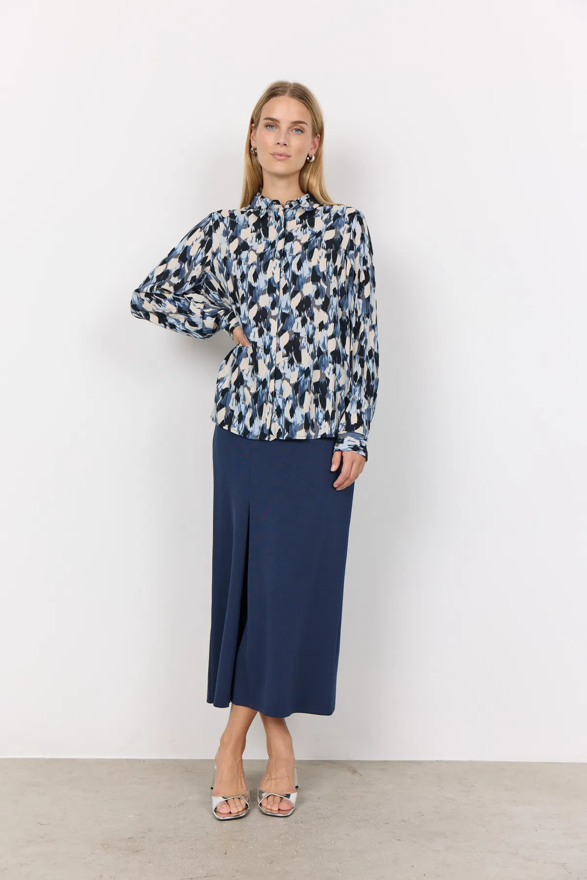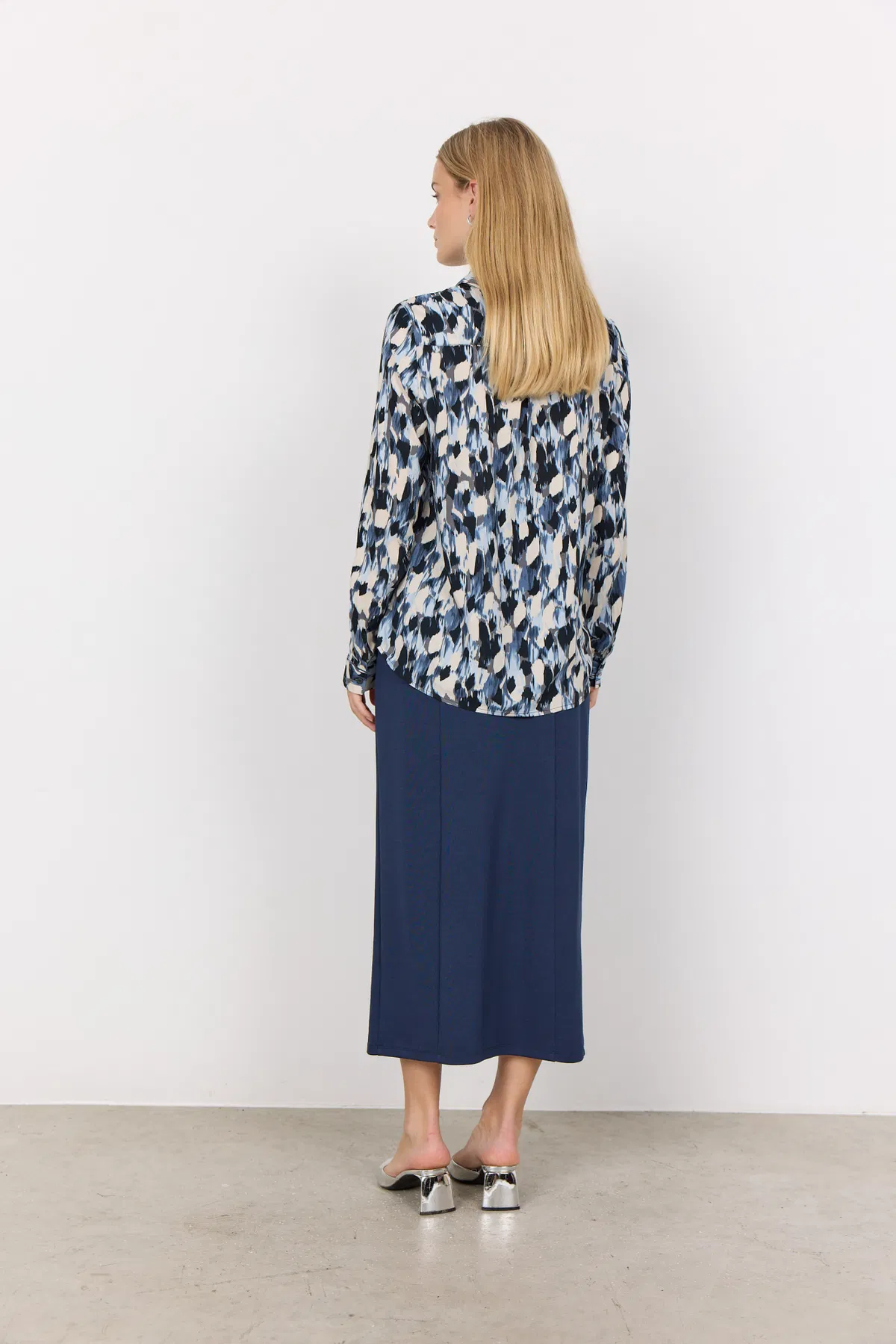 SC-Soyaconcept Nanna 1. Soyaconcept Bluse mit langen Ärmeln, Kragen und Allover-Print.