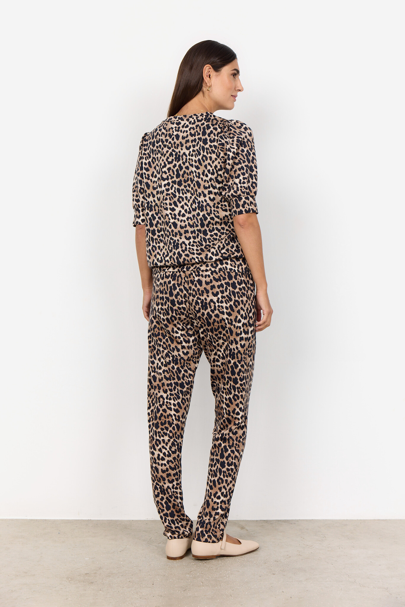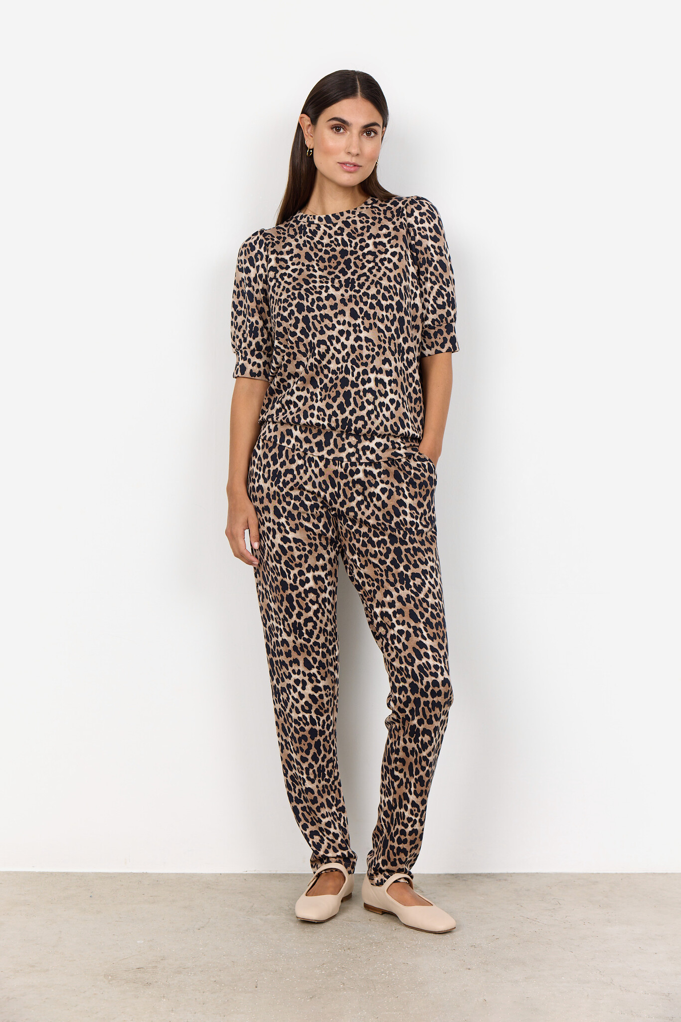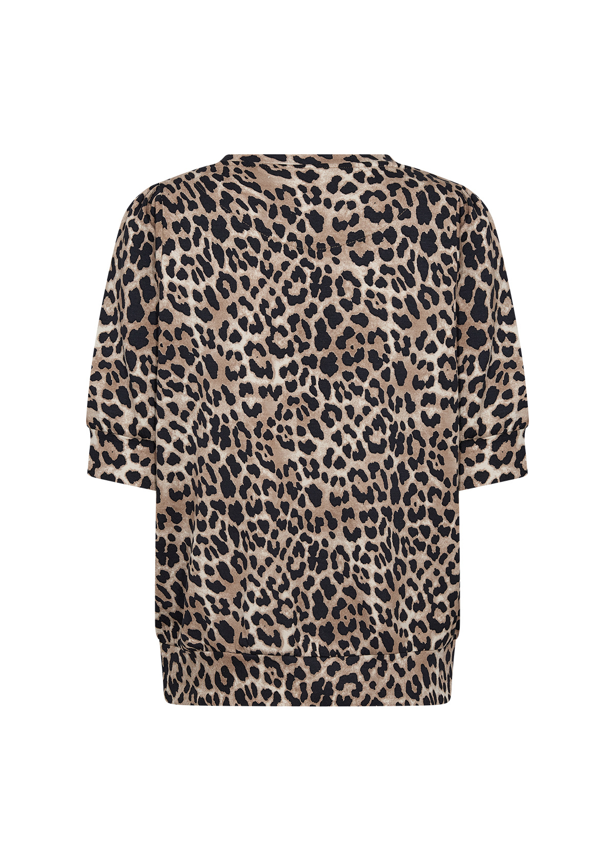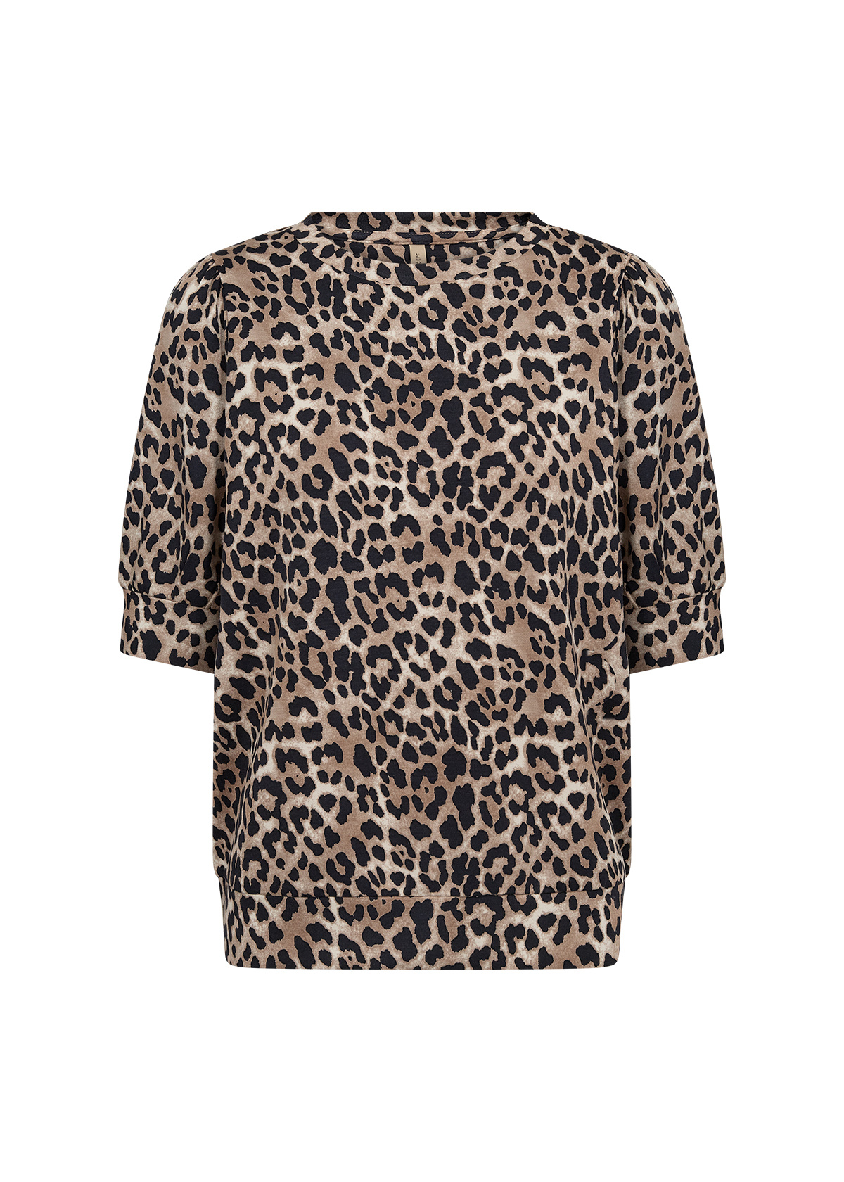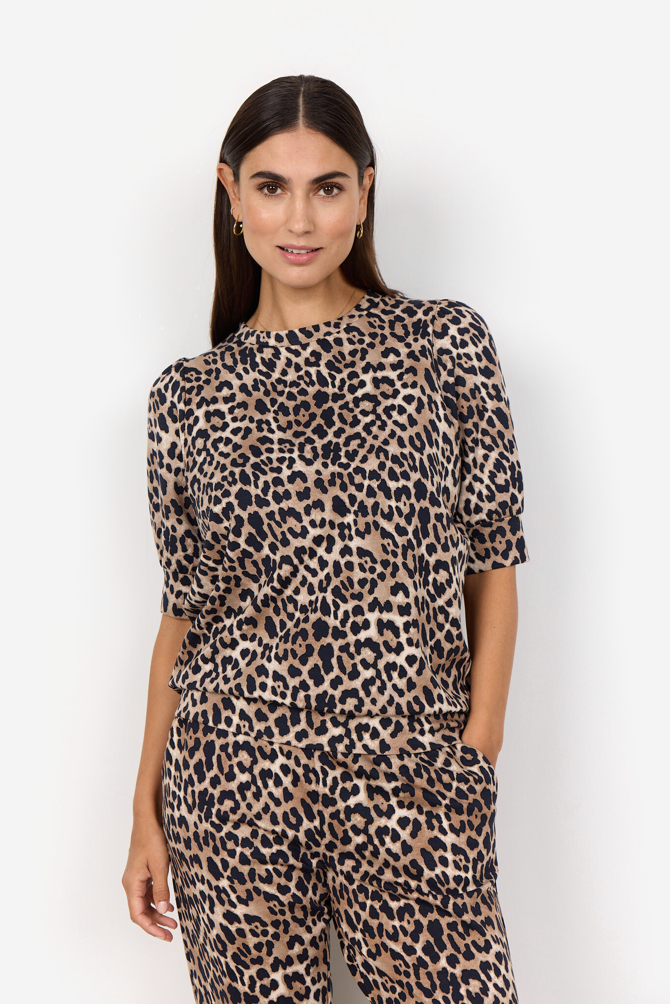 Soyaconcept SC-Ophia 2. Soyaconcept Bluse mit kurzen Ärmeln, Rundhalsausschnitt und Leo-Muster. Aus weichen Materialmix mit Stretchanteil.