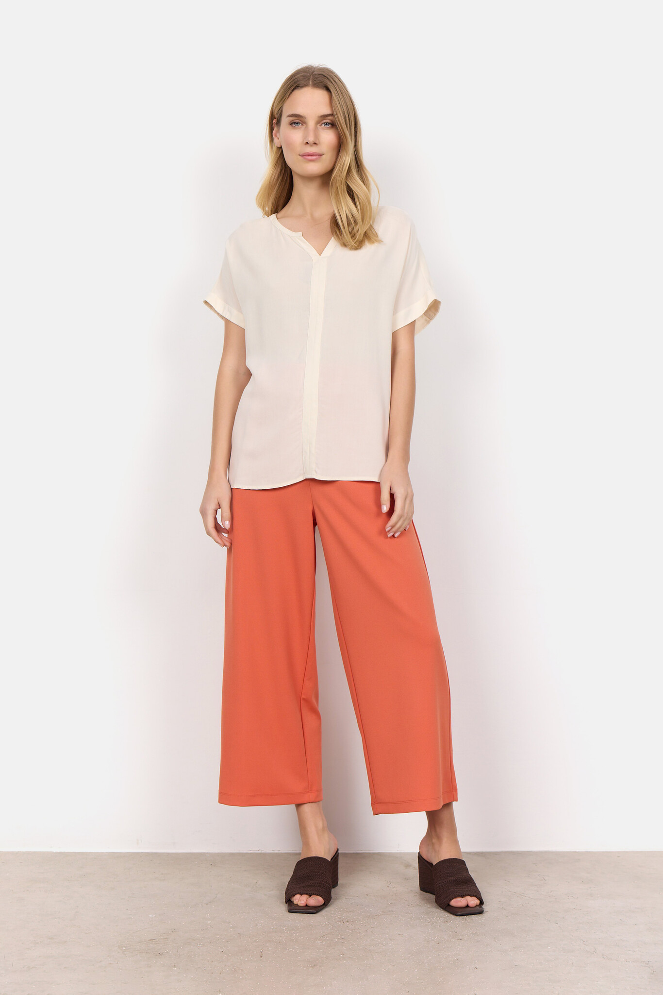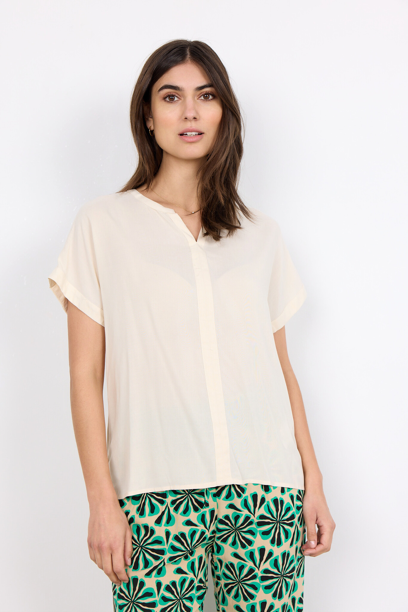 Soyaconcept SC-Radia 9. Soyaconcept Bluse mit kurzen Ärmeln und geschlitzter Rundhalsausschnitt. Die Basic Soyaconcept Bluse hat überschnittenen Schultern und ist aus weicher Viskose.