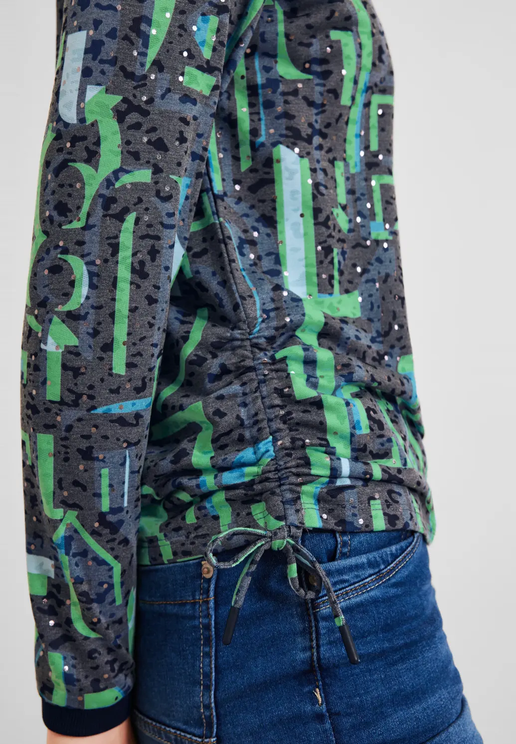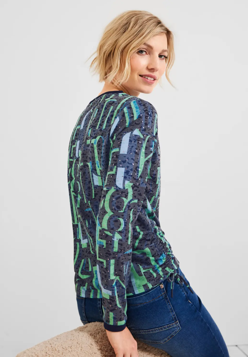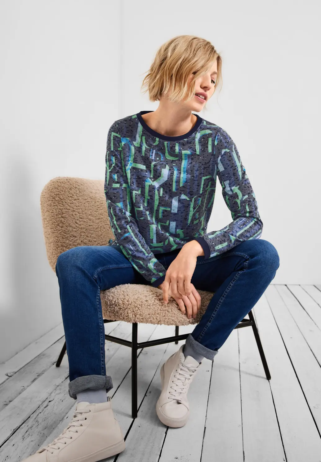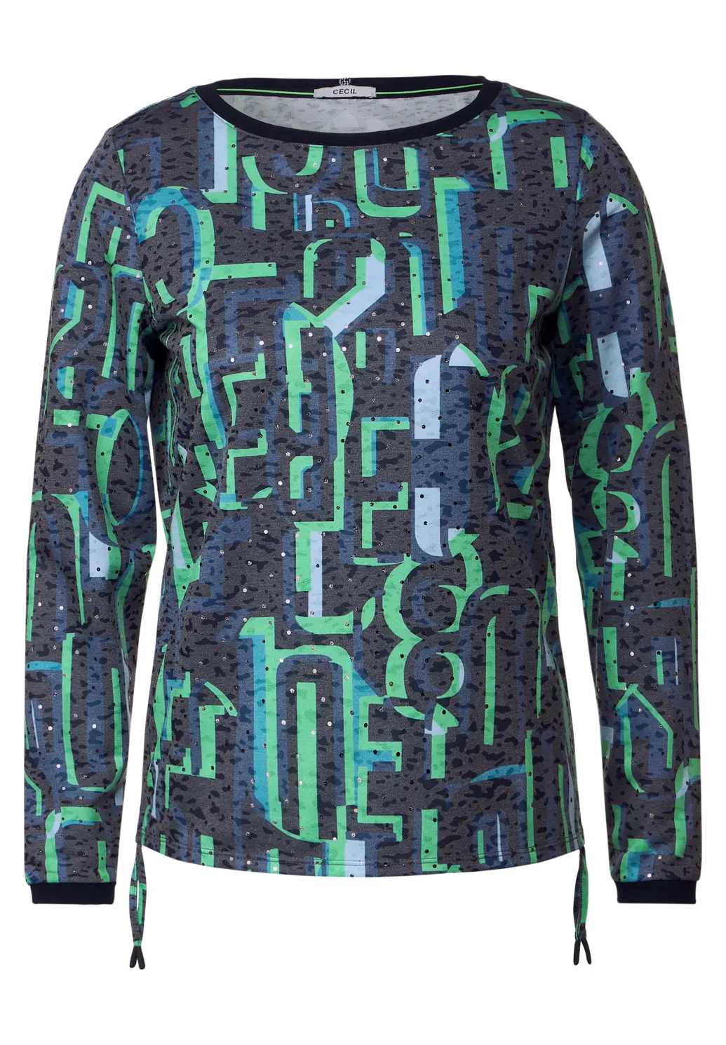 Cecil Shirt mit langen Ärmeln, Rundhalsausschnitt und Allover Burnout-Print. Das Cecil Shirt hat seitliche Tunnelzugbänder.