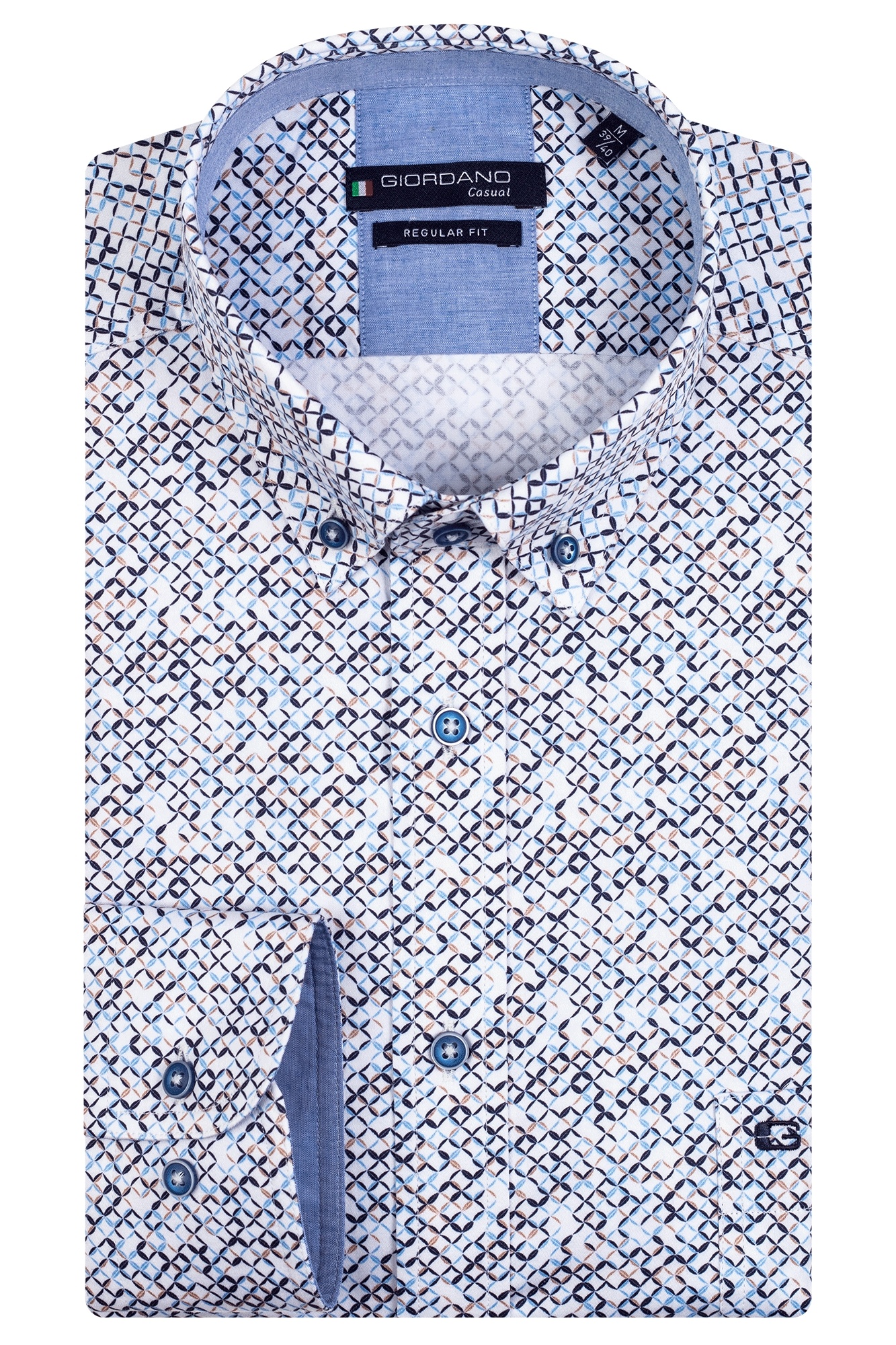 Giordano Hemd mit langen Ärmeln, Button-Down Kragen und Regular Fit. Das Giordano Hemd hat einen Brusttasche und ein Allover Print.