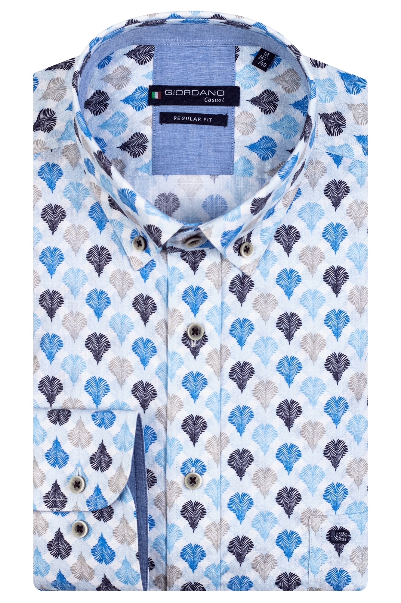 Giordano Hemd mit langen Ärmeln, Button-Down Kragen und Regular Fit. Das Giordano Hemd hat einen Brusttasche und ein Allover Print.
