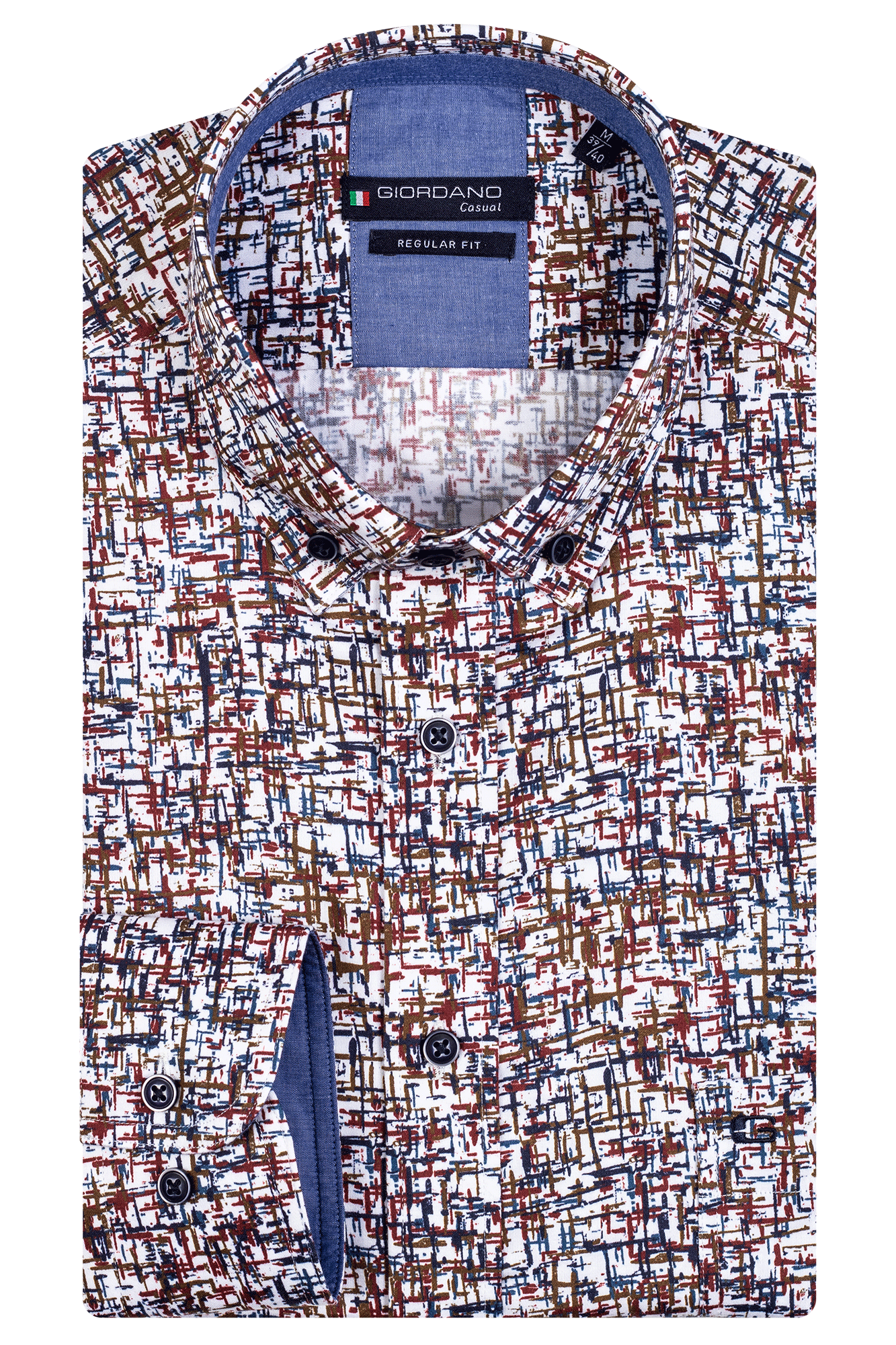 Giordano Hemd mit langen Ärmeln, Button-Down Kragen und Regular Fit. Das Giordano Hemd hat einen Brusttasche und ein Allover Print.