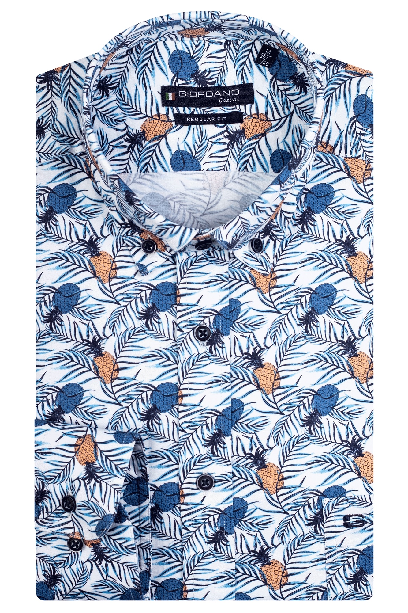 Giordano Hemd mit langen Ärmeln, Button-Down Kragen und Regular Fit. Das Giordano Hemd hat einen Brusttasche und ein Allover Print.