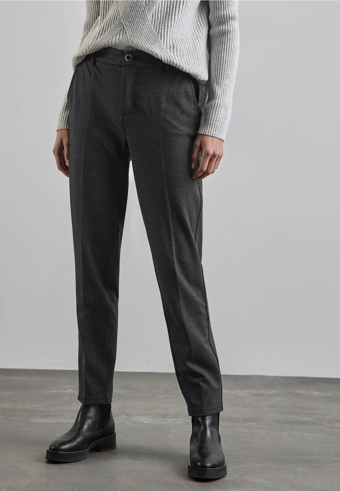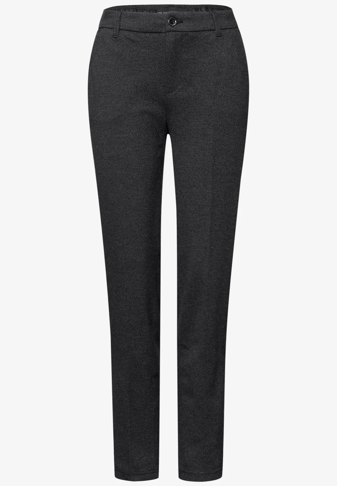 Weiche Street One Chino Hose mit lässiger Passform, mittelhoher Taille und schmalen Beinen. Die Street One Hose kommt im Melange-Look und hat seitlichen Eingrifftaschen.