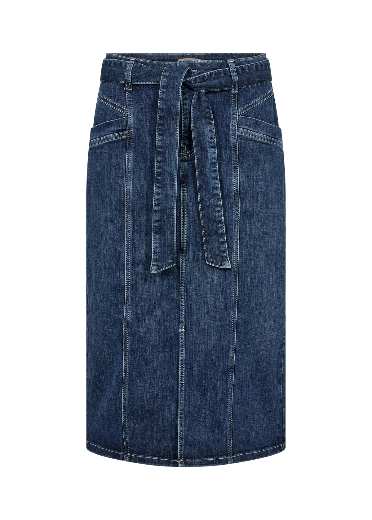 Soyaconcept SC-KIMBERLY 38. Soyaconcept Denim Rock mit passendem Gürtel, Eingrifftaschen und Knielänge.