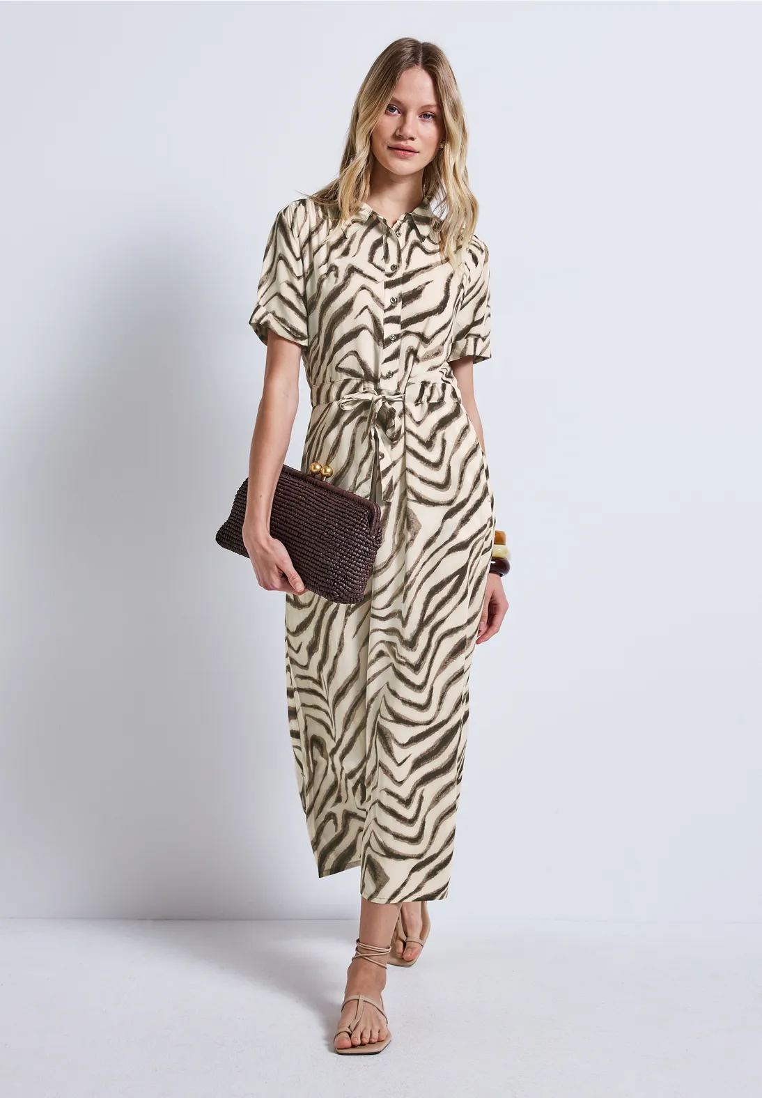 Gemustertes Blusenkleid - Tumbled Beige