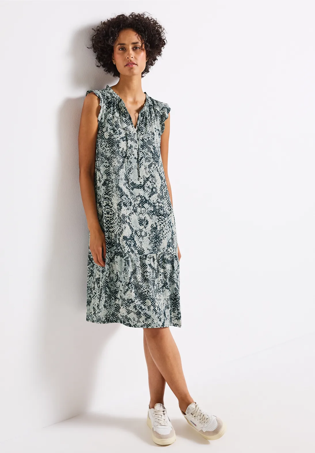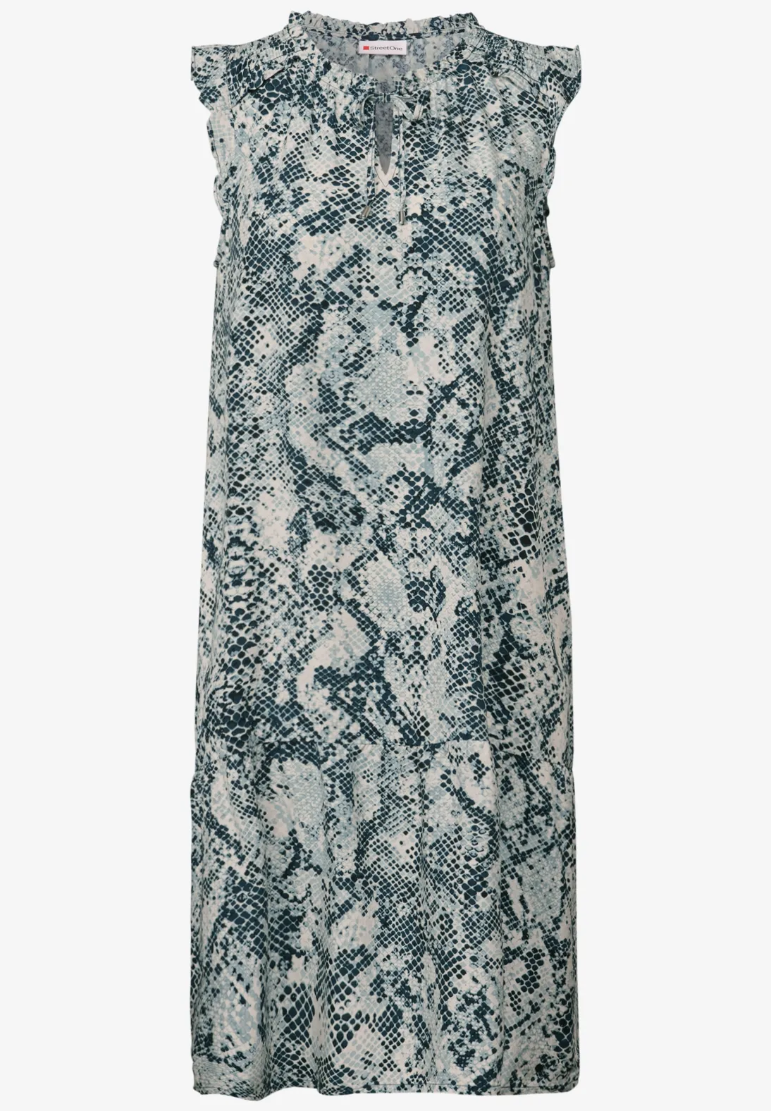 Street One Tunikakleid mit geschlitztem Ausschnitt, Grafikprint und Rüschen an den Schultern. Das Street One Kleid ist aus weicher Viskose.