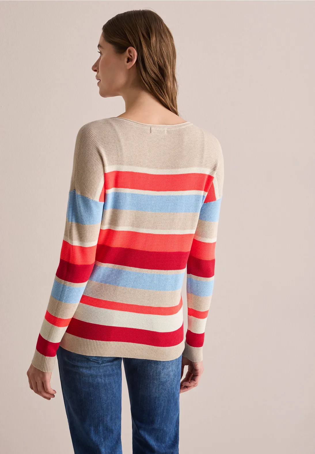 Cecil Pullover mit langen Ärmeln, U-Boot Ausschnitt und bunten Strukturstreifen. Dieser Cecil Pulloverist aus einem Baumwollmix.