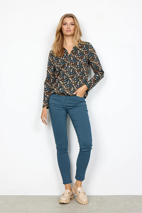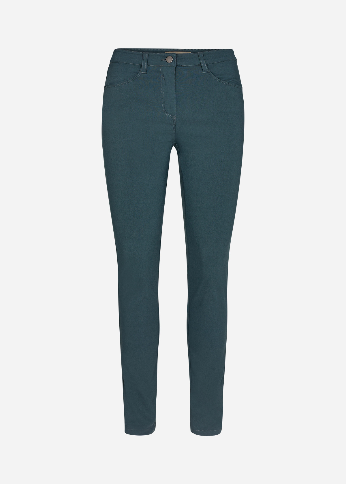 Soyaconcept Lilly 1-B. Soyaconcept Hose mit Skinny Fit, normaler Bundhöhe und schmalen Beinen. Das 5-Pocket Modell wird mit einem Knopf und Zipper geschlossen. Die weiche Soyaconcept Hose ist aus komfortablen Viskose-Mix mit Stretchanteil für zusätzlichen Komfort.