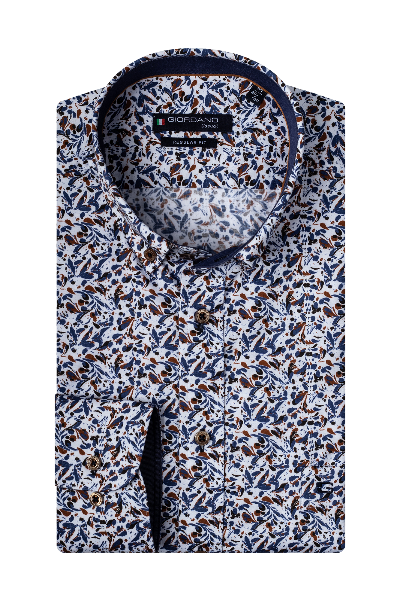 Giordano Hemd mit langen Ärmeln, Button-Down Kragen und Regular Fit. Das Giordano Hemd hat einen Brusttasche und Allover Print.