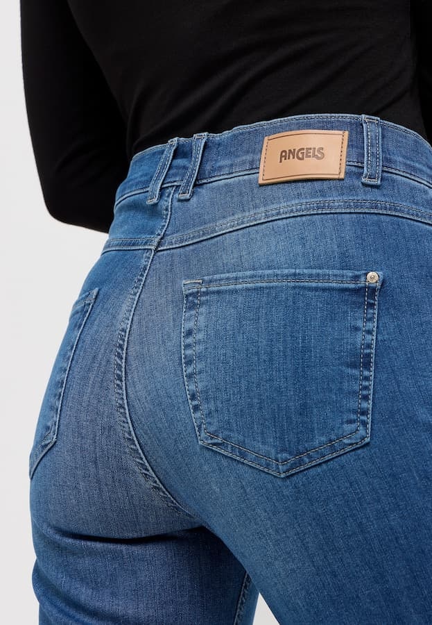 Angels Jeanswear Lara. Angels Jeans mit Straight Fit, hoher Taille und weiten Beinen. Die Angels Jeans hat ein authentisches 5-Pocket-Modell und Washung.