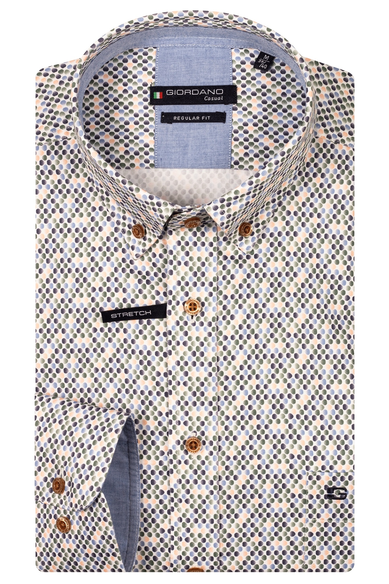Giordano Hemd mit kurzen Ärmeln, Button-Down Kragen und Regular Fit. Das Giordano Hemd hat einen Brusttasche und Allover Print.