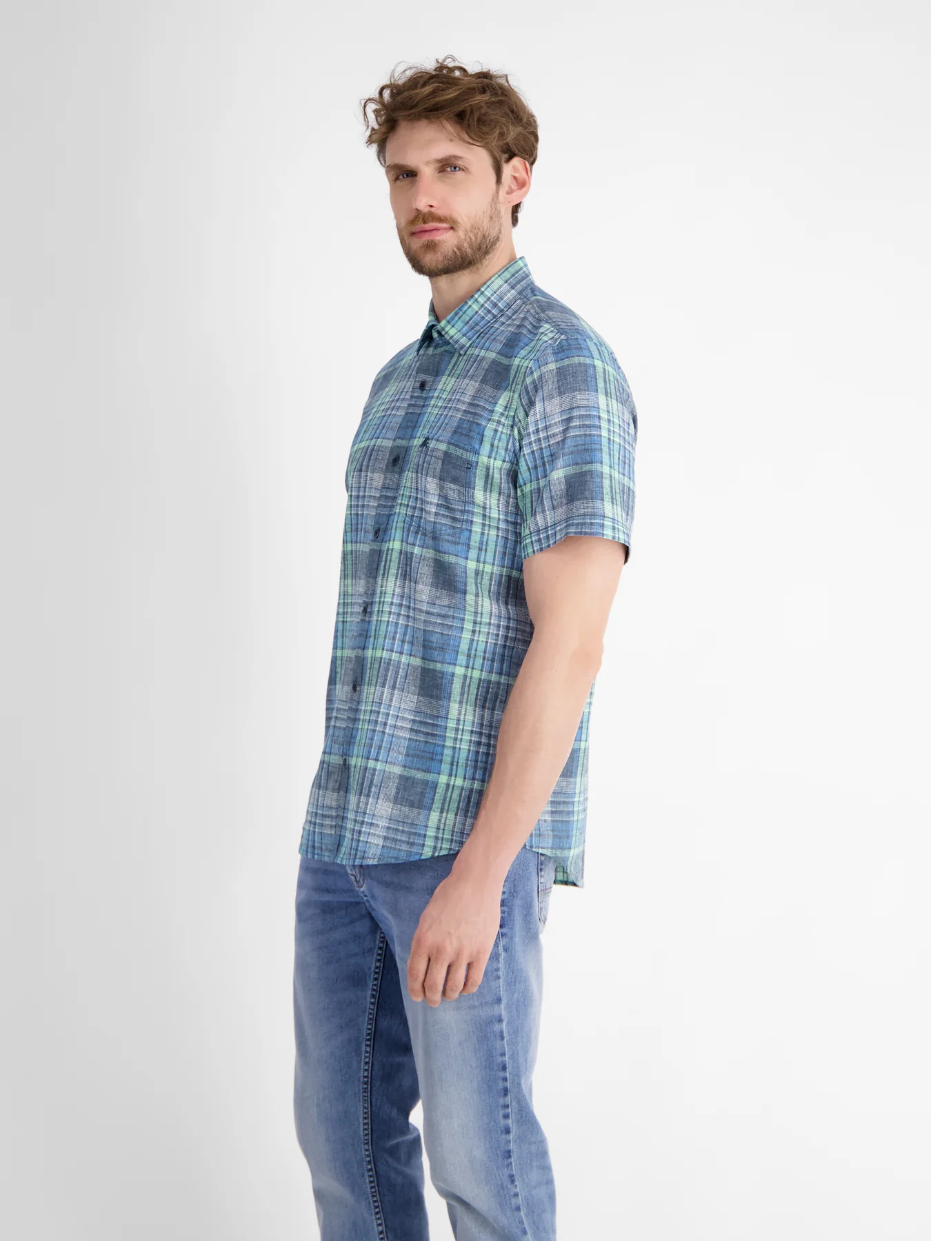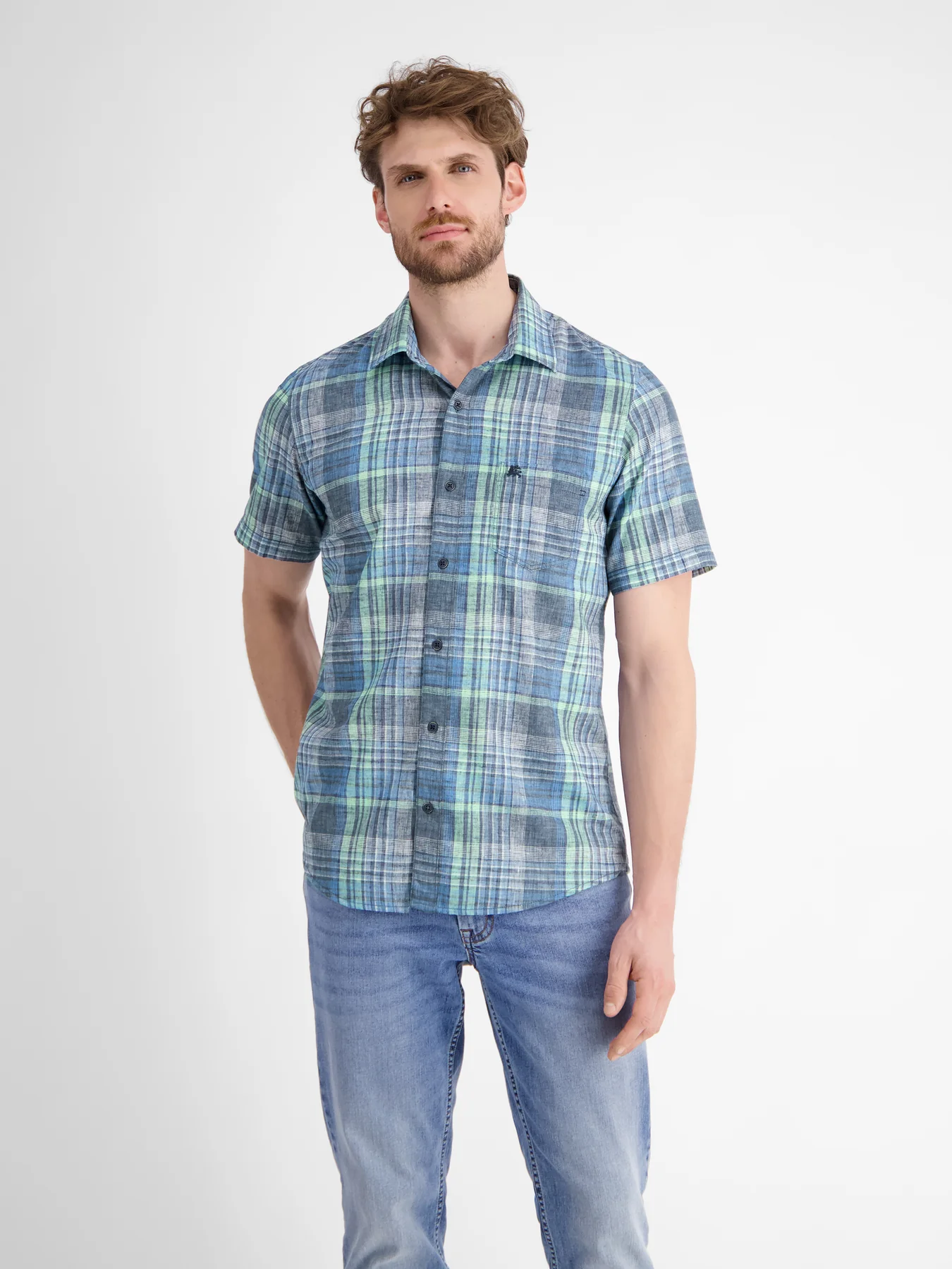 Lerros Hemd mit kurzen Ärmeln, Karomuster und Kent-Kragen.