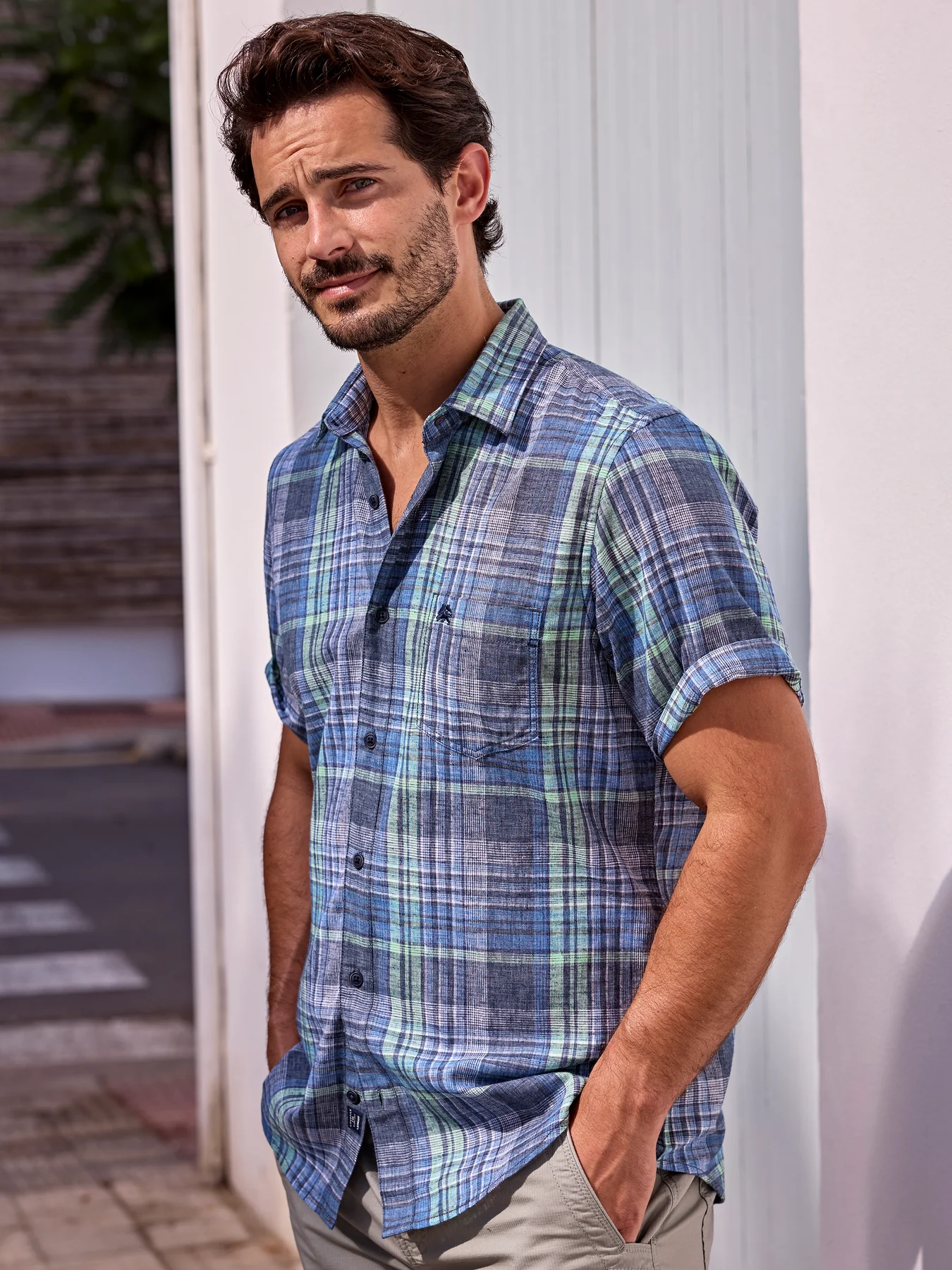 Kurzarm Shirt Karo - Classic Navy