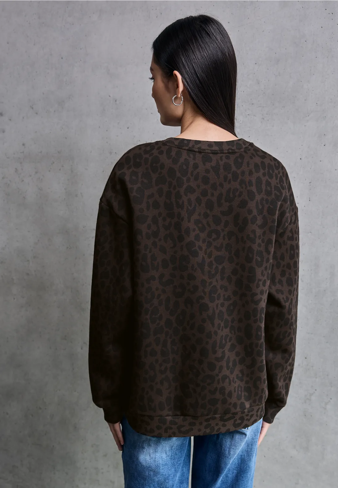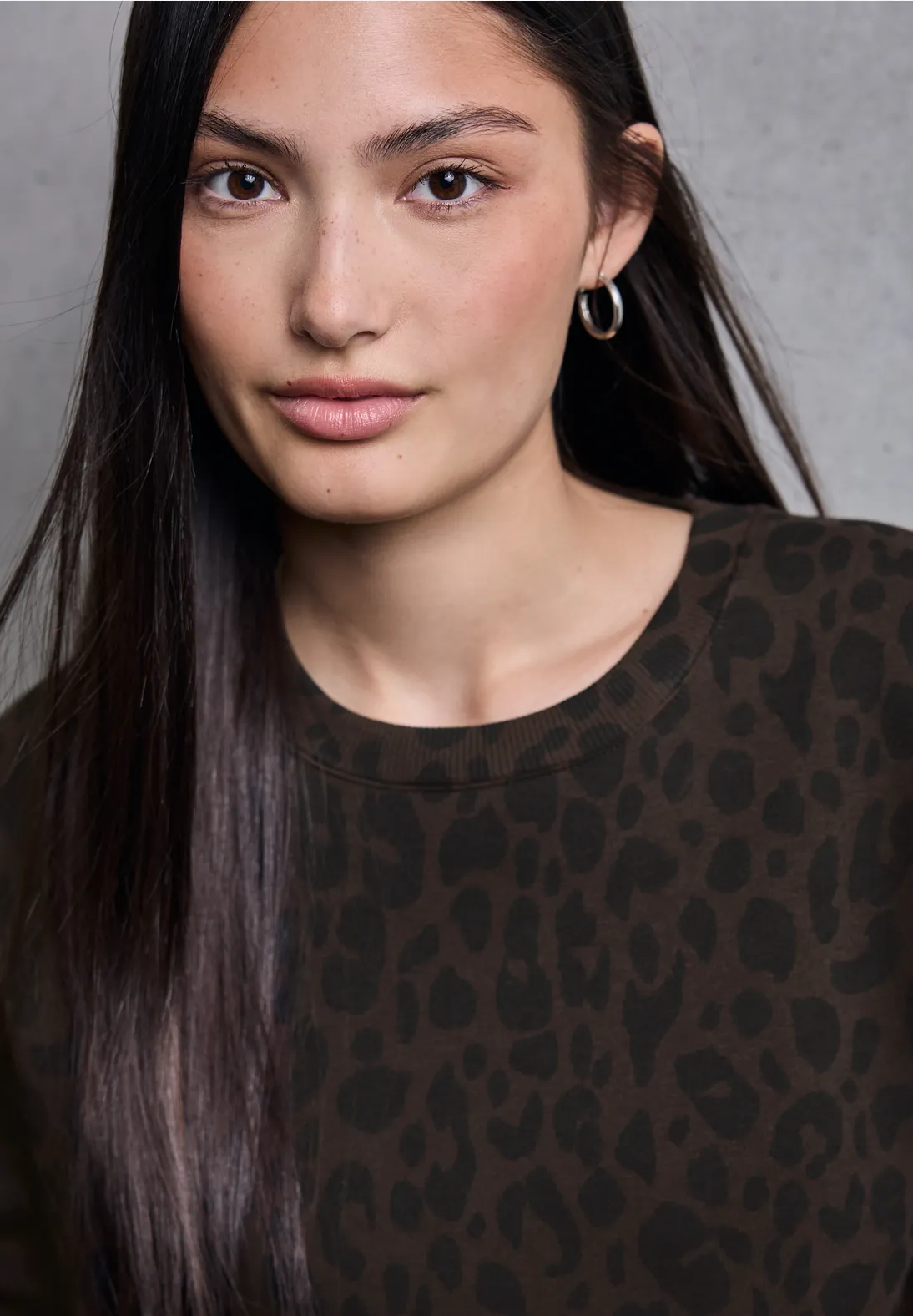 Street One Studio Sweatshirt mit langen Ärmeln, Rundhalsausschnitt und Animalprint. Dieser Street One Studio Pullover hat eine lässige, lockere Passform.