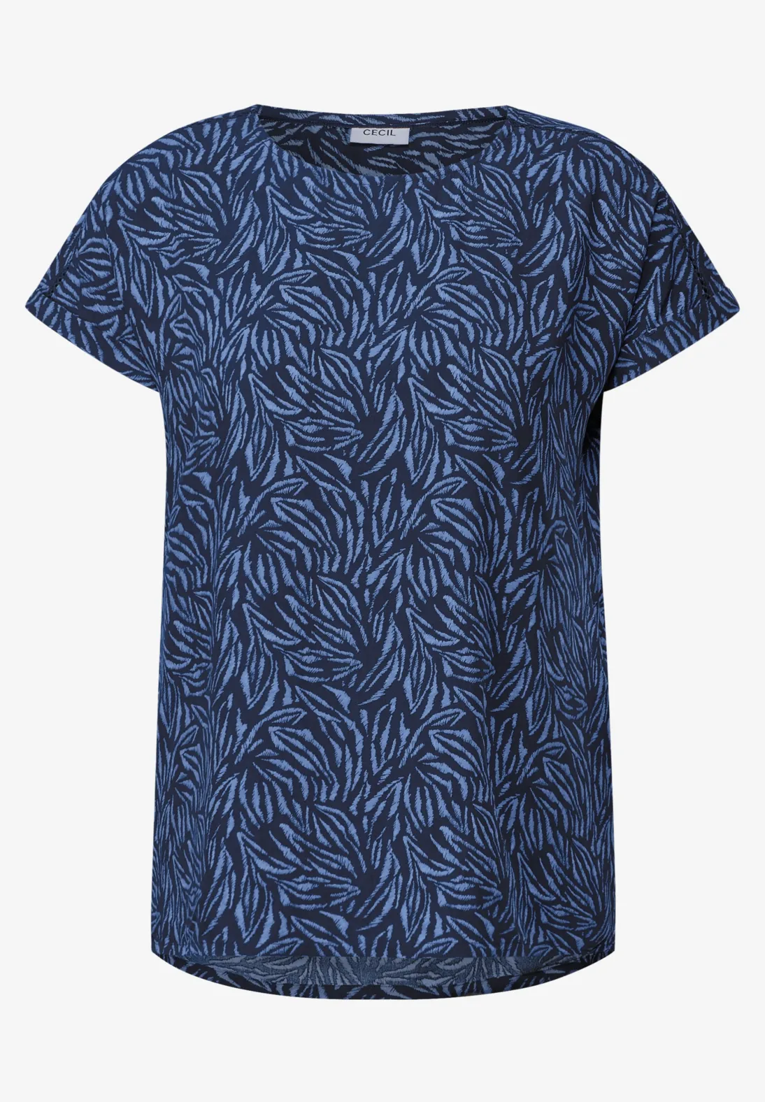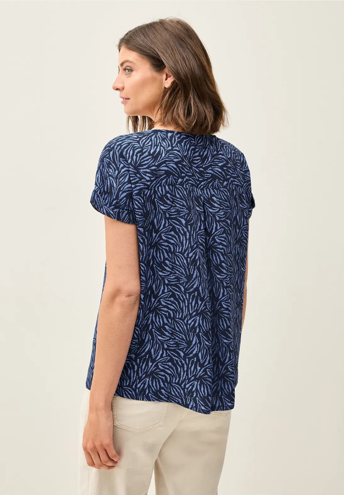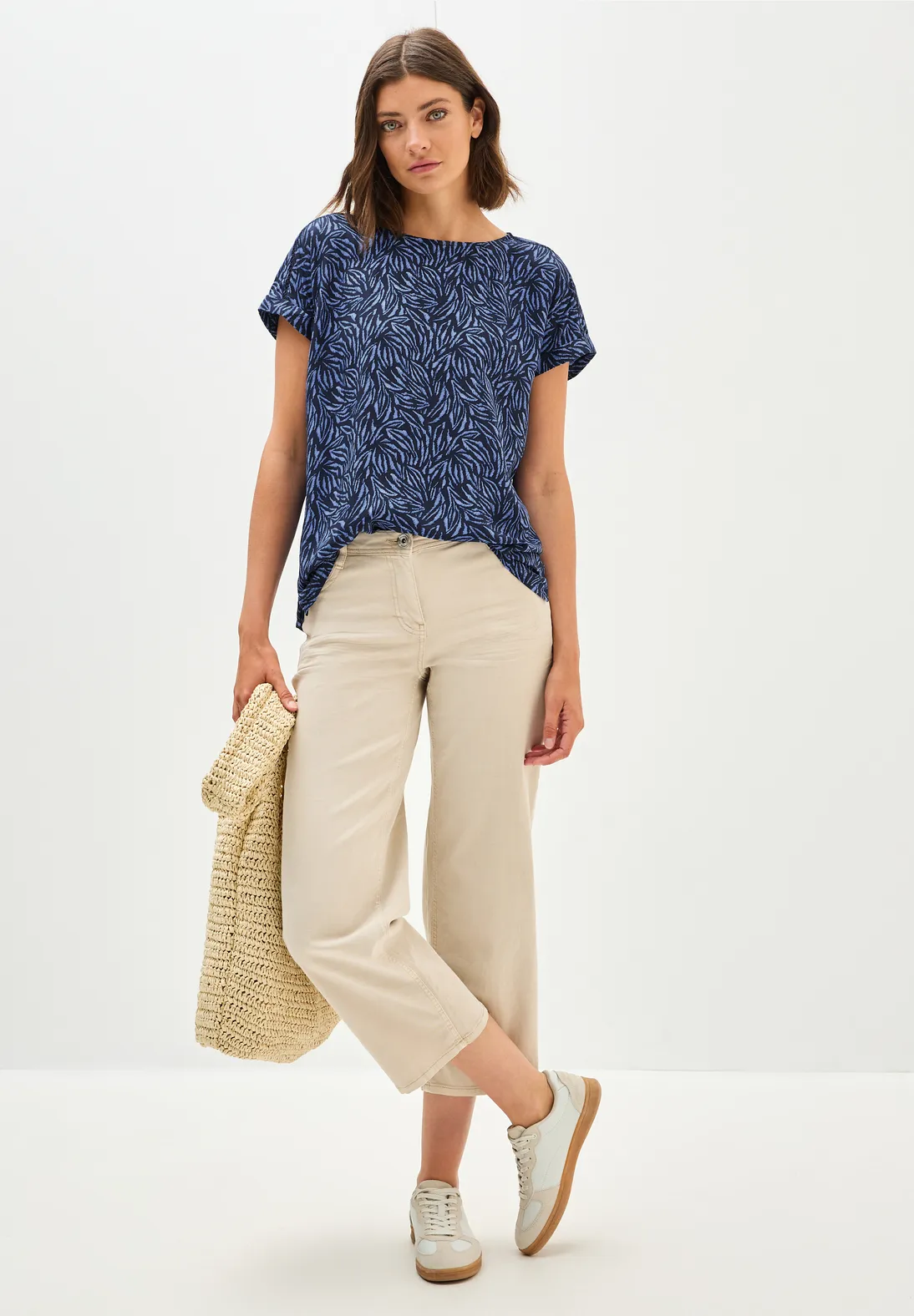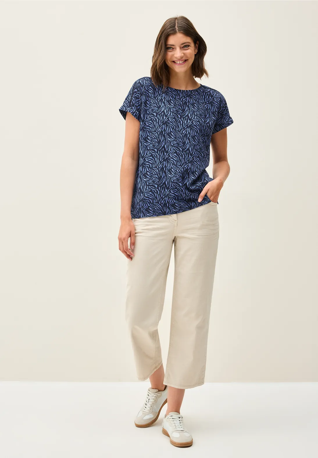Leichte Cecil Bluse mit kurzen Ärmeln, Rundhalsausschnitt und sommerlichem Minimal-Print. Die Cecil Bluse hat ein Detail an der Schulter und ist aus weicher Viskose.