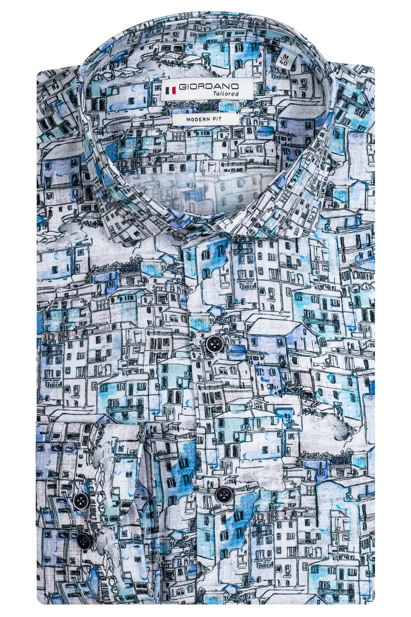 BeschreibungModern Fit Hemd Watercolor House - Blue
