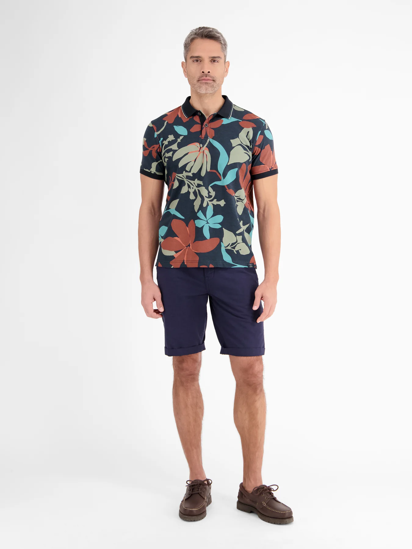 BeschreibungPoloshirt mit Blumen Print - Classic Navy