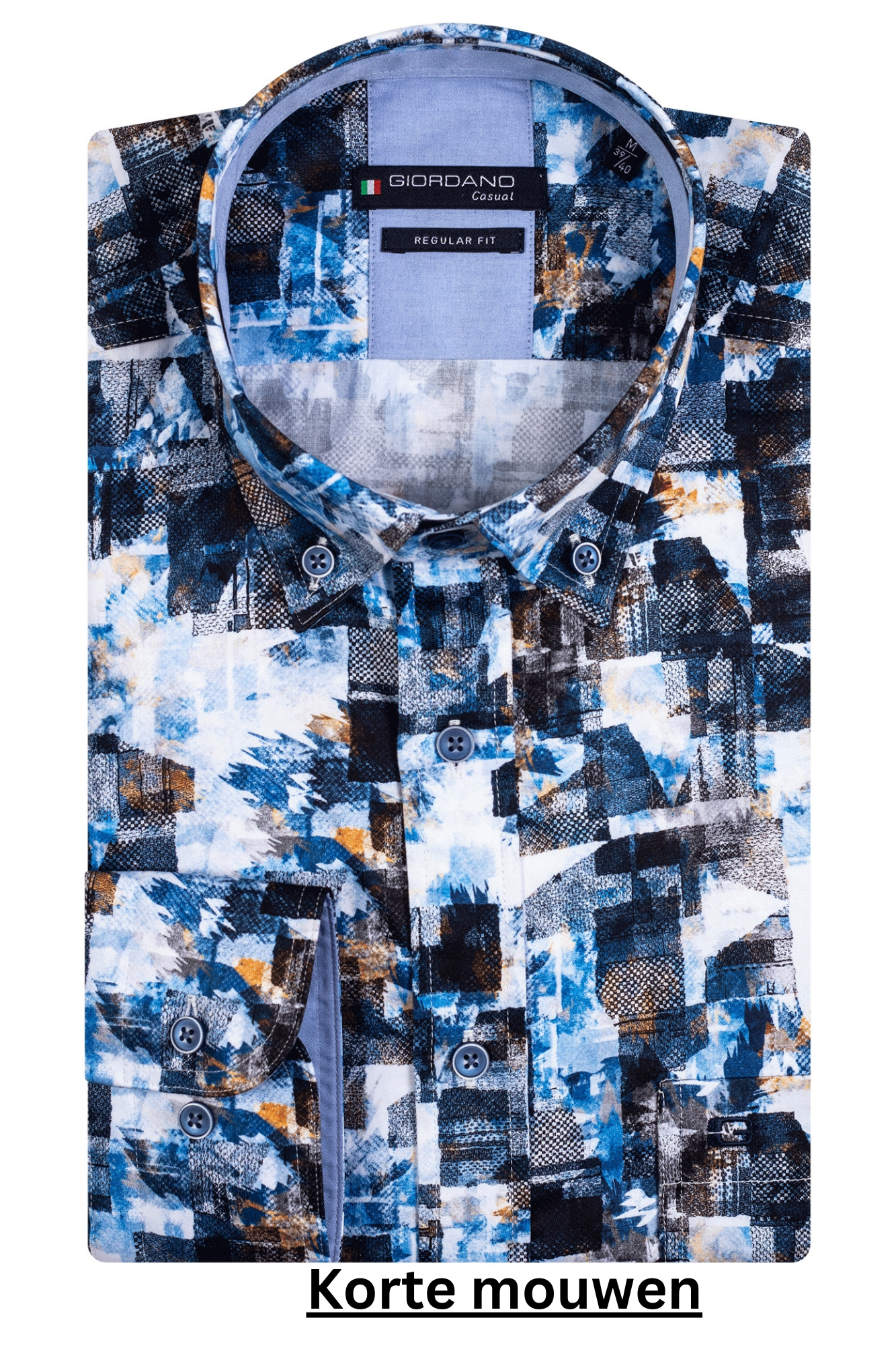Giordano Hemd mit kurzen Ärmeln, Button-Down Kragen und Regular Fit. Das Giordano Hemd hat einen Brusttasche und Allover Print.