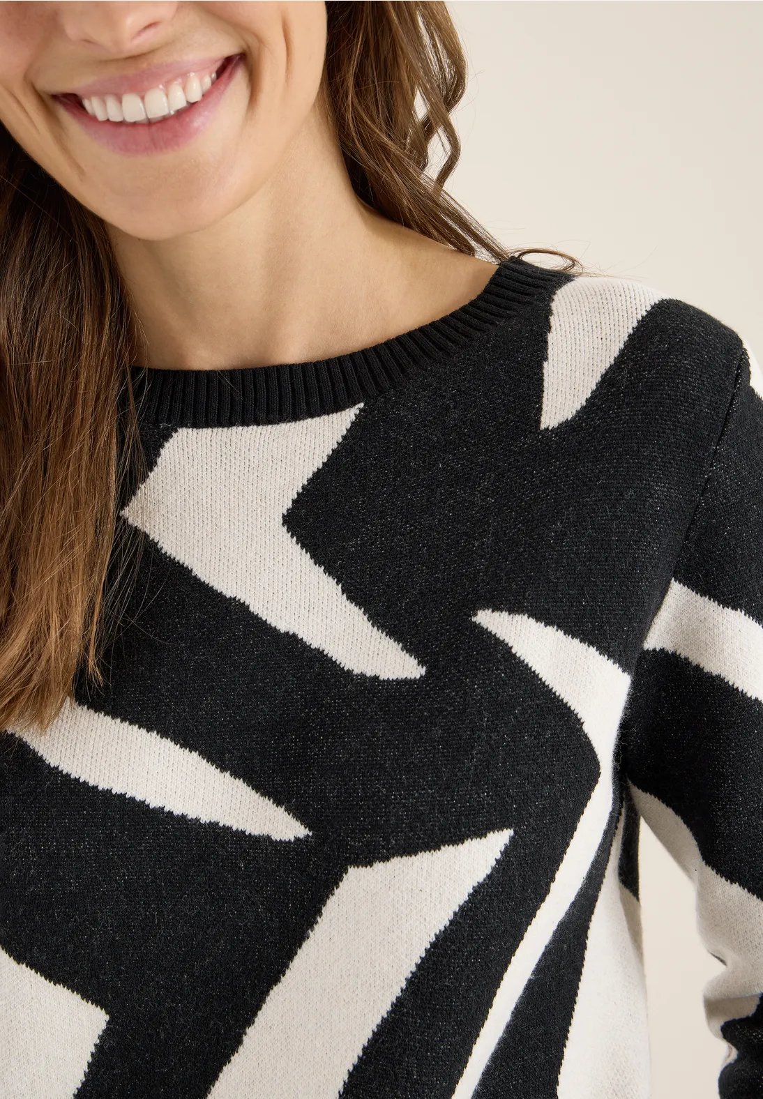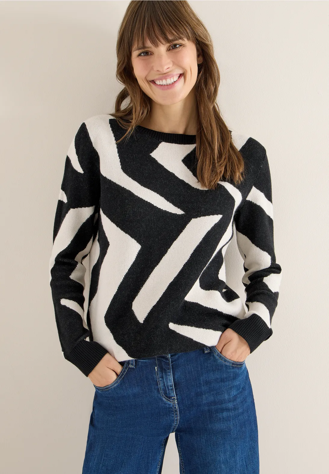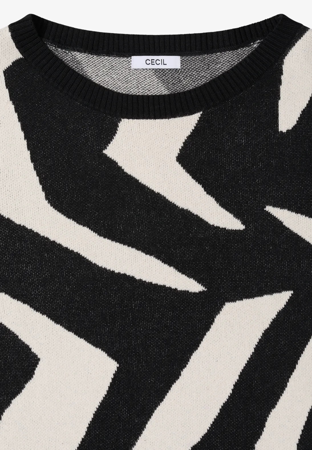 CECIL Damenpullover – Schwarz | Weicher Pullover mit grafischem Muster und U-Boot-Ausschnitt