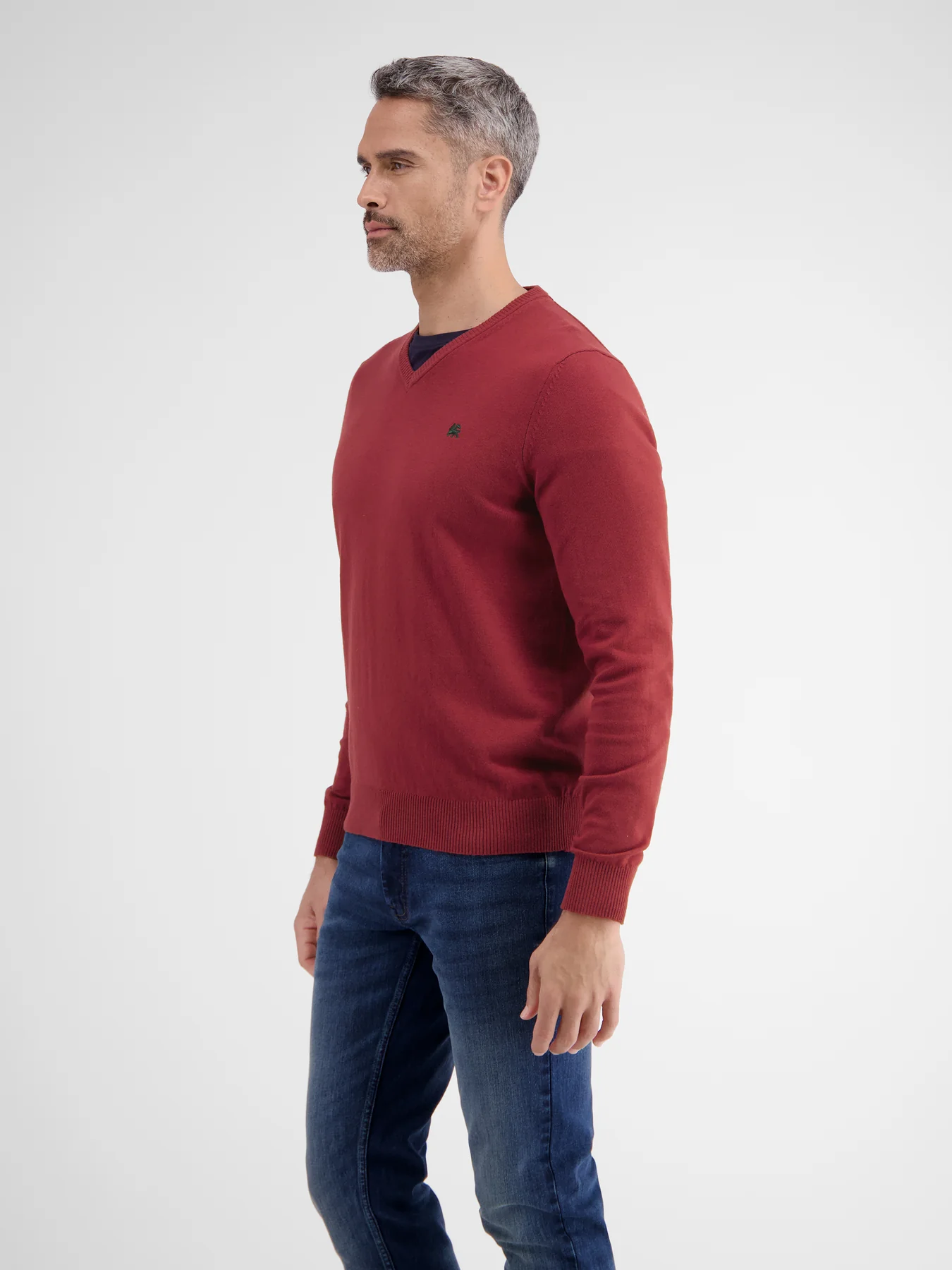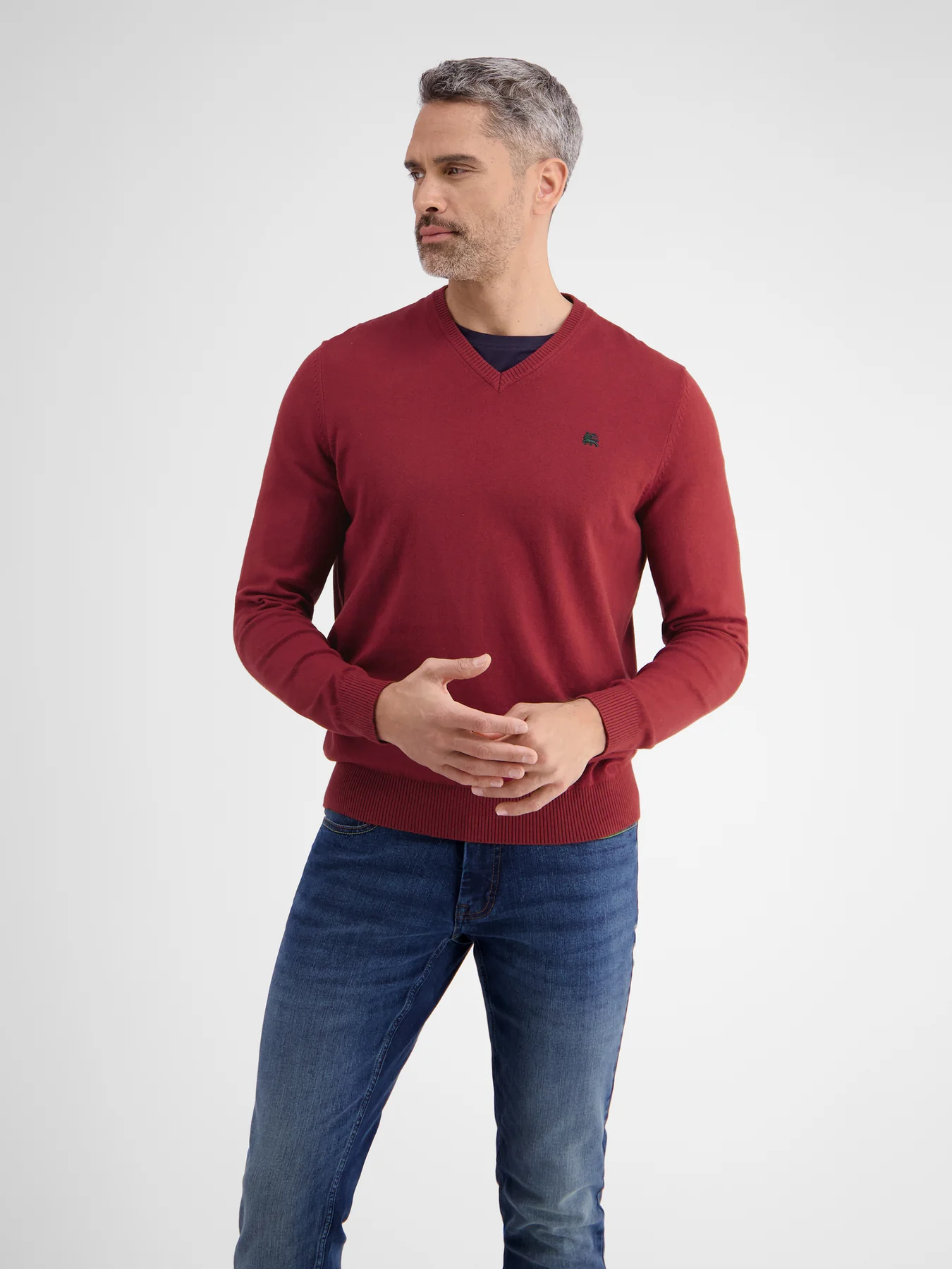 BeschreibungPullover mit V-Ausschnitt mit Kaschmir-Anteil - Deep Garnet Red