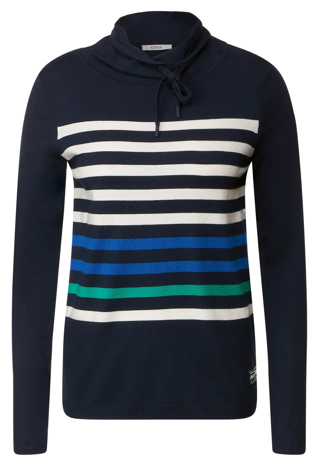 Cecil Pullover mit langen Ärmeln, sportlichen Streifen und lockerem Volumenkragen mit Tunnelzugband.