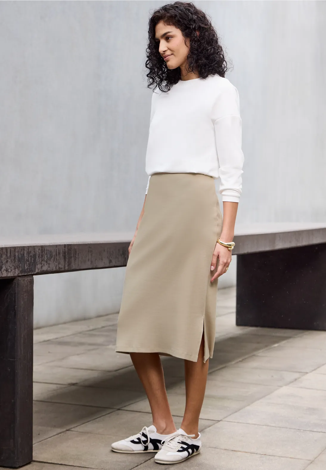 BeschreibungRippstruktur Bleistiftrock - Sandshell Beige
