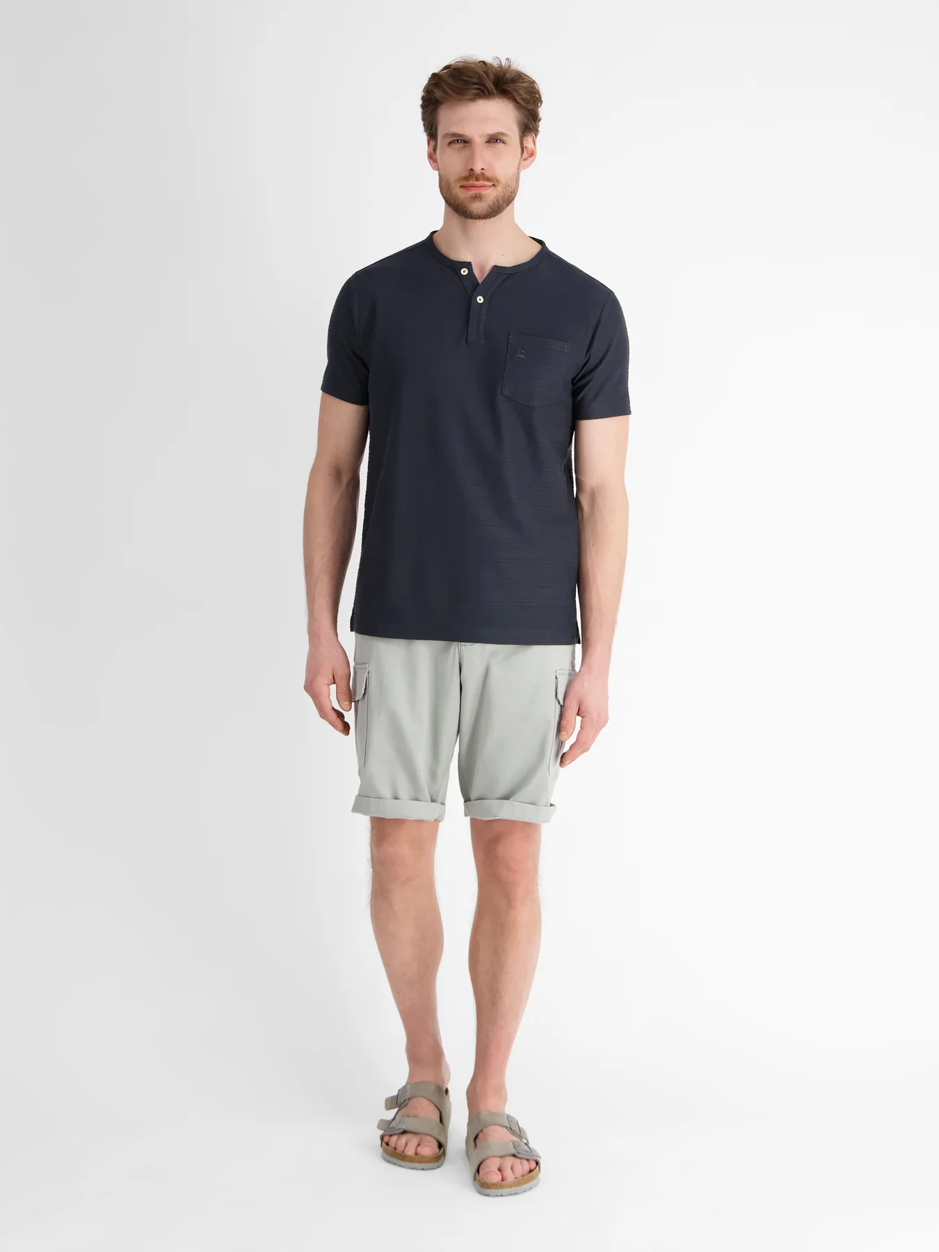Serafino Shirt mit Strukturstreifen - Classic Navy