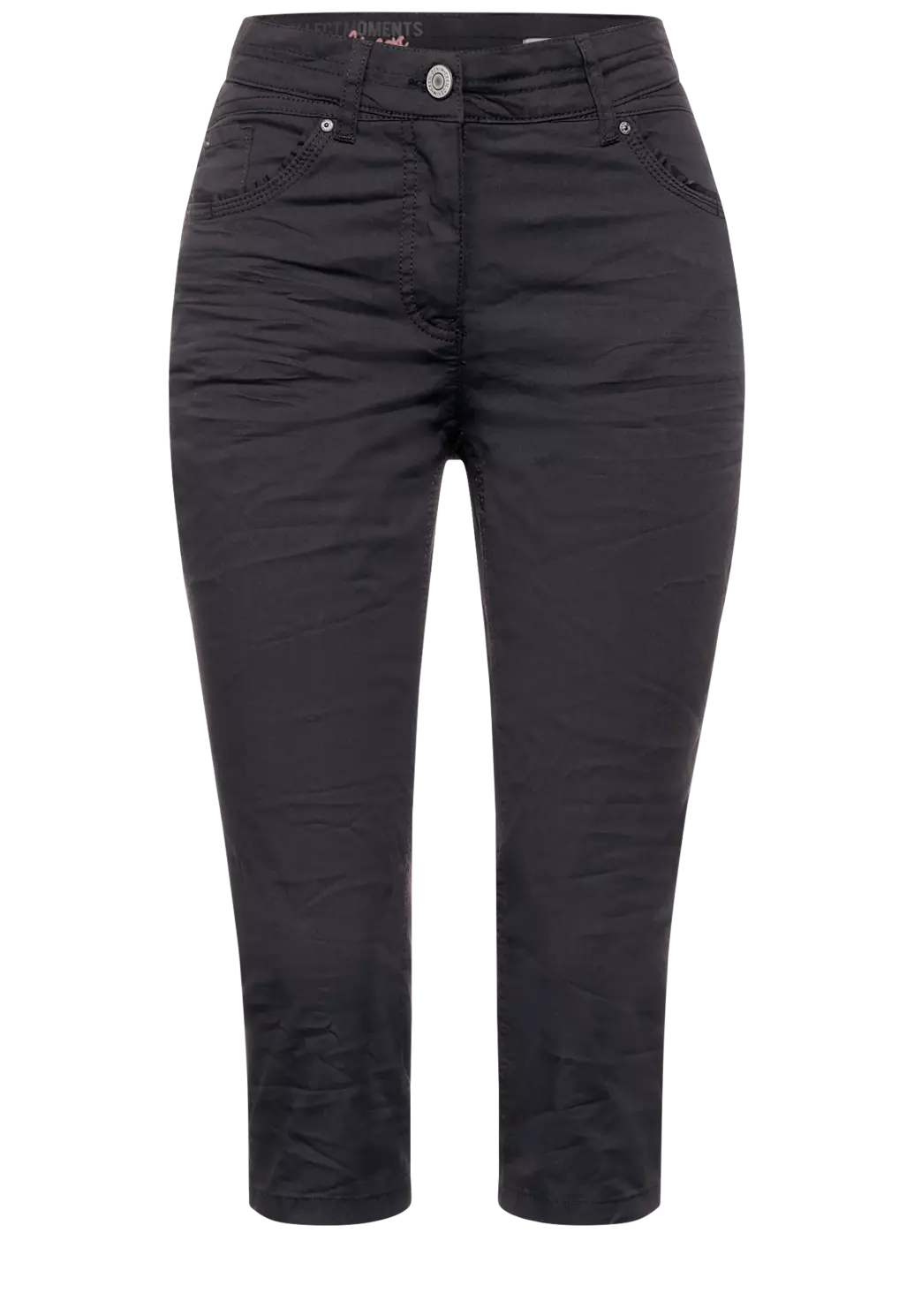 Cecil Vicky. Cecil Hose mit Slim Fit, hoher Taille und schlanken Beinen in sommerlicher 3/4-Länge. Die Cecil Hose wird mit einem Reißverschluss und einem Knopf geschlossen.