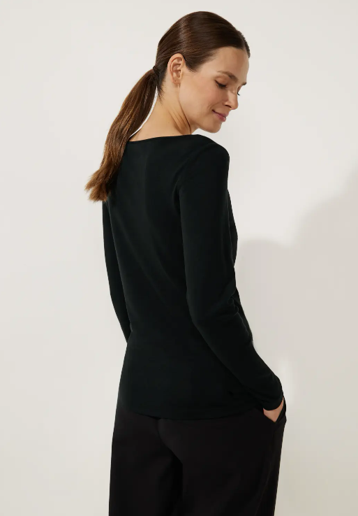 Street One Lanea. Softes Street One Shirt mit langen Ärmeln, U-Boot Ausschnitt und einem Futter mit Oberstoff auf der Vorderseite. Das Street One Basic kann vielseitig kombiniert werden. Im körpernahem Schnitt.