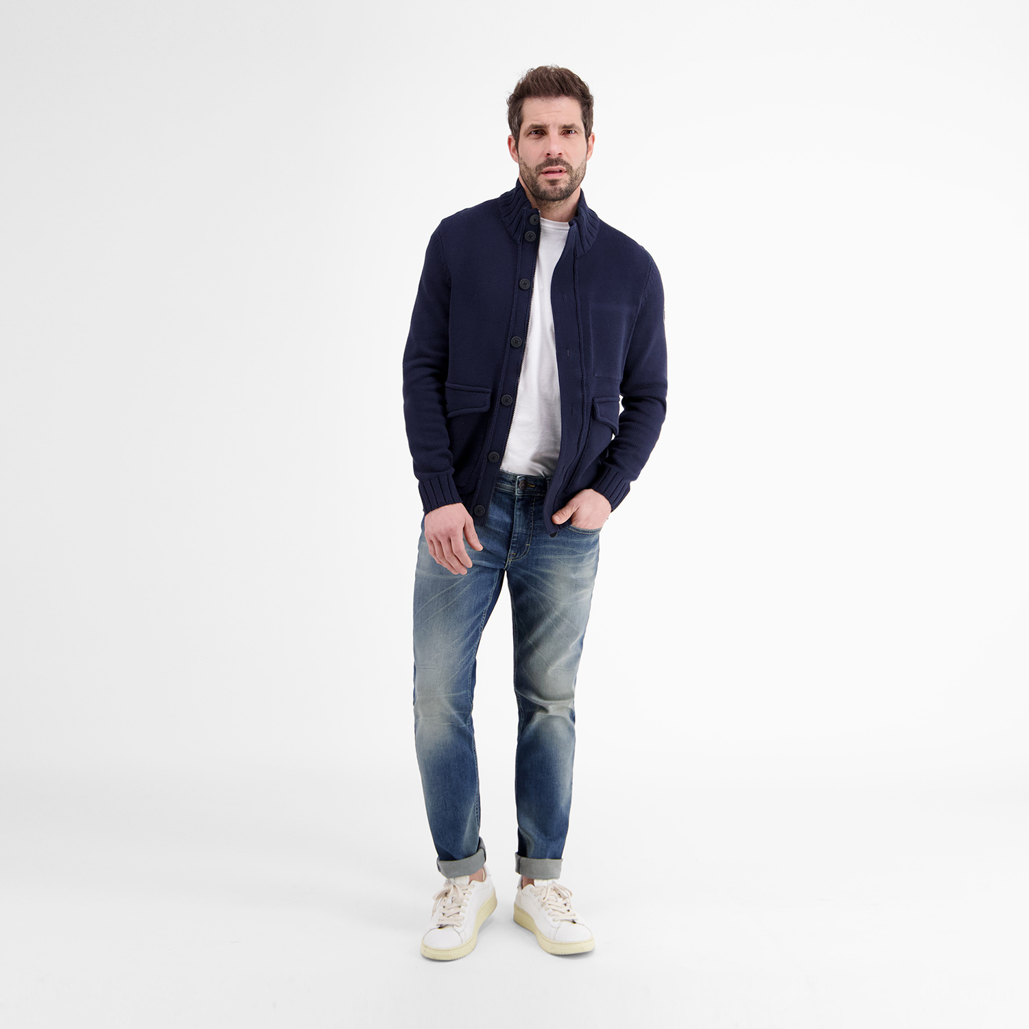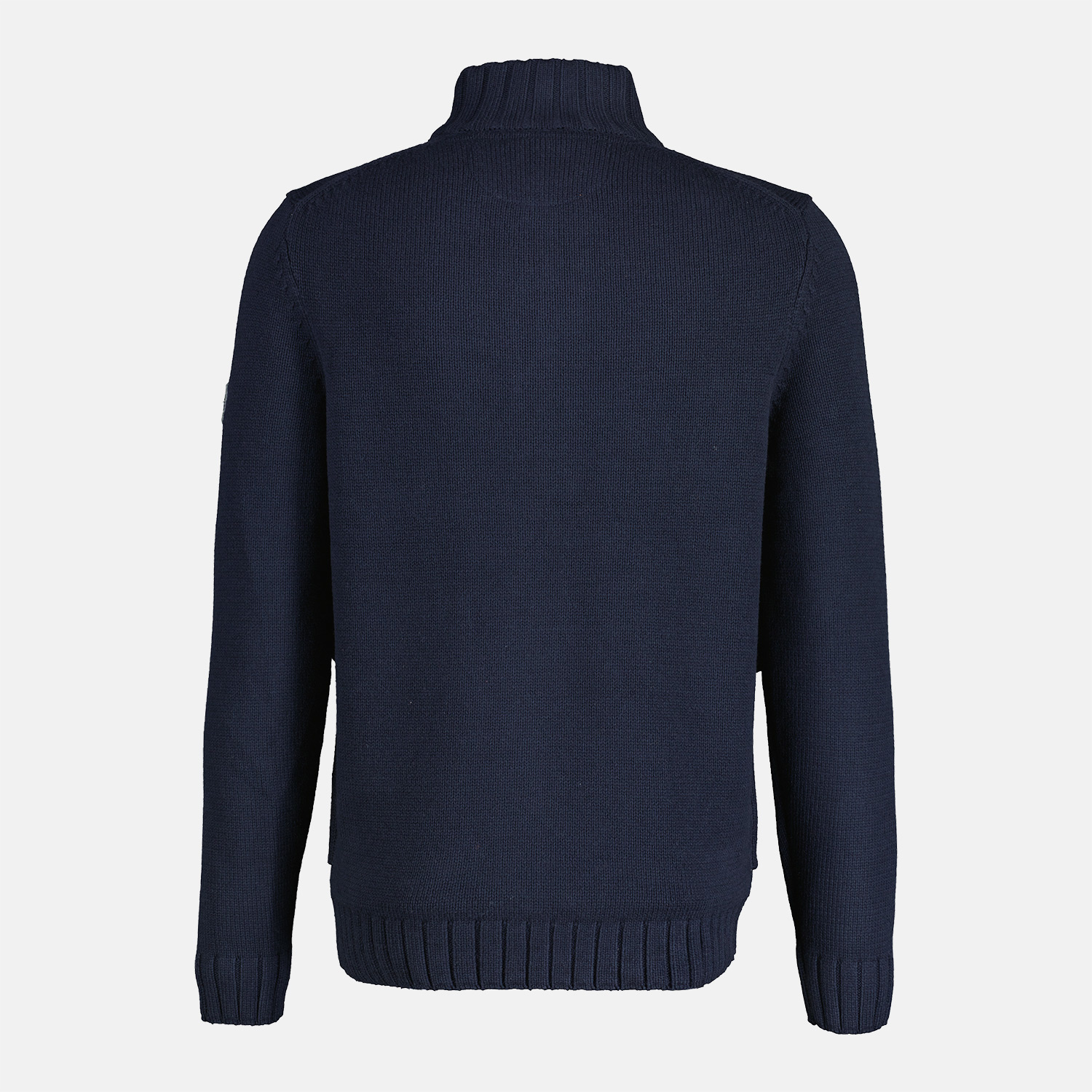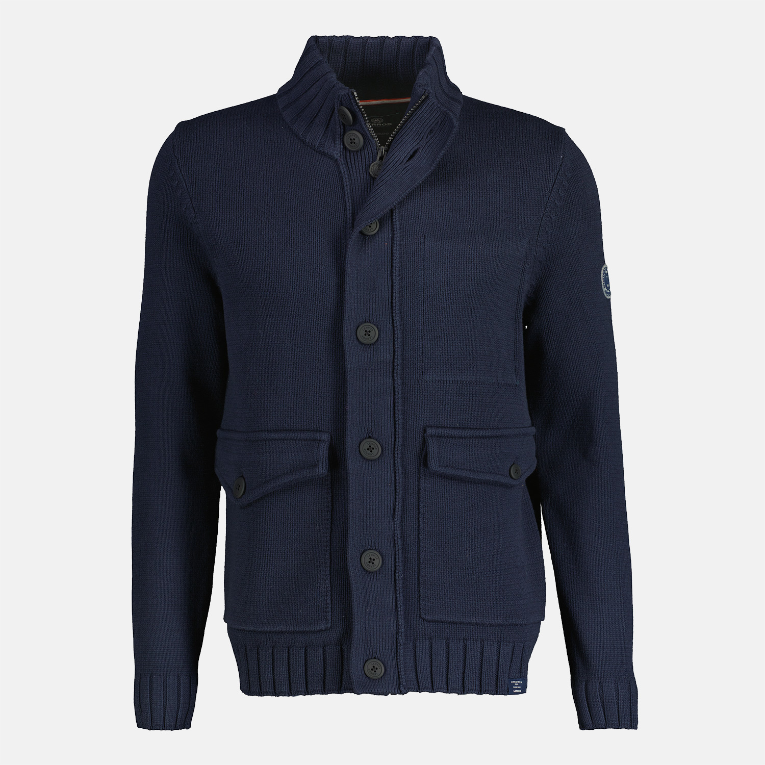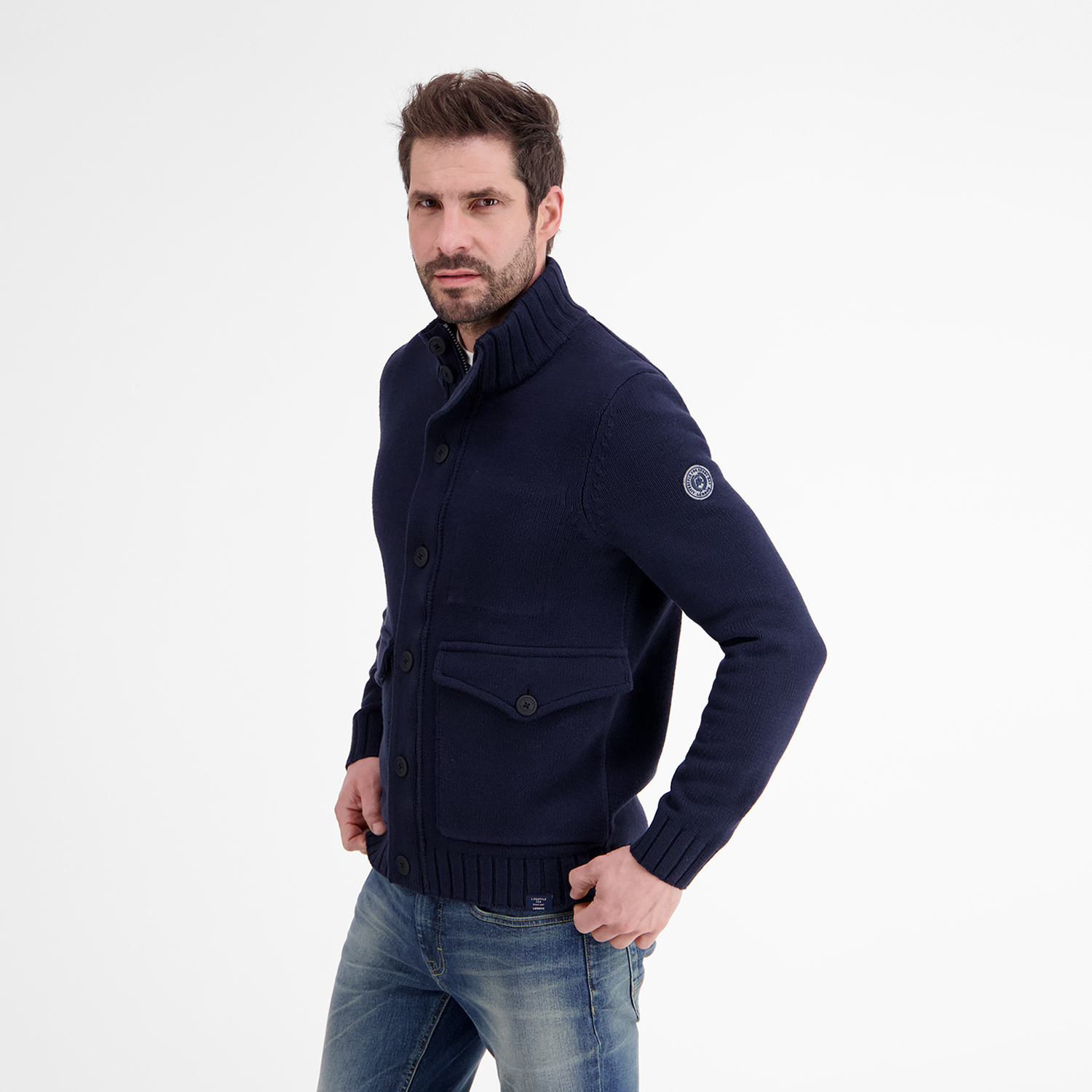 Lerros Cardigan mit langen Ärmeln, Stehkragen und Pattentaschen. Dieser Lerros Cardigan wird mit einem Reißverschluss und großen Knöpfen geschlossen. Aus einem grob gestrickten, hochwertigen Baumwoll-Mix.