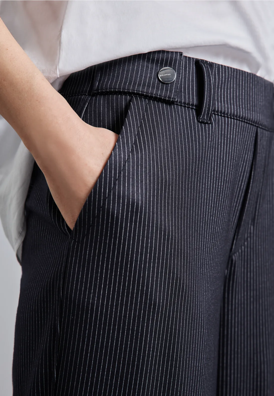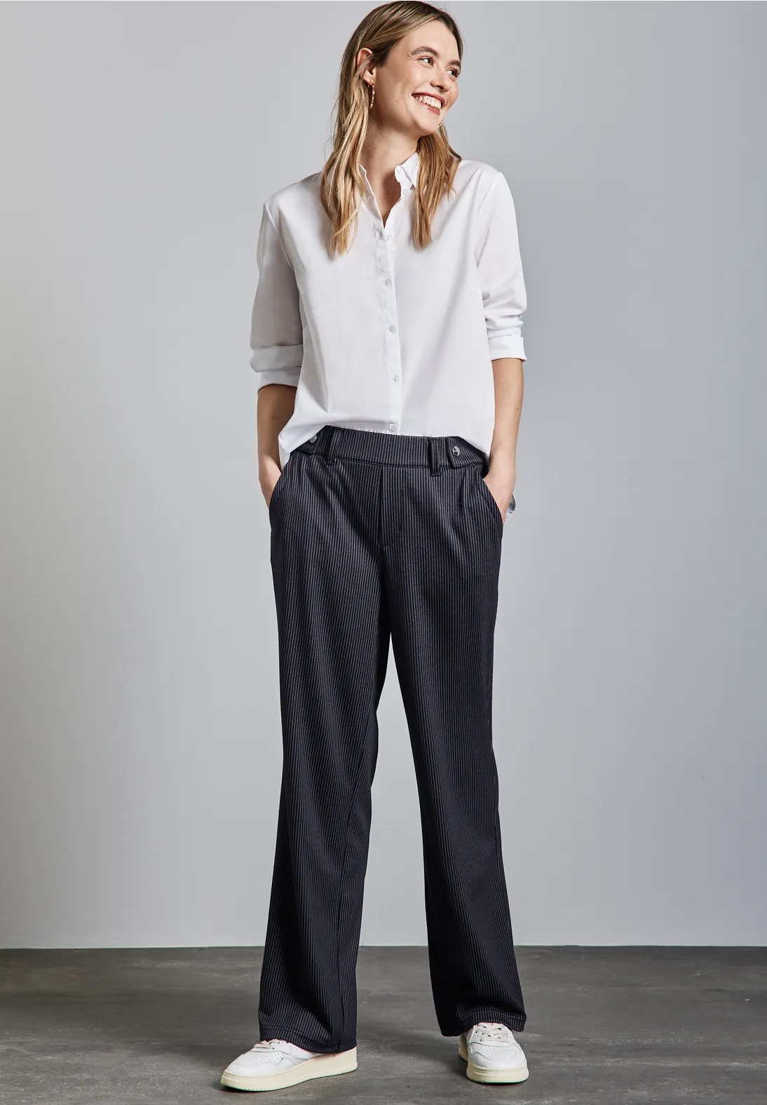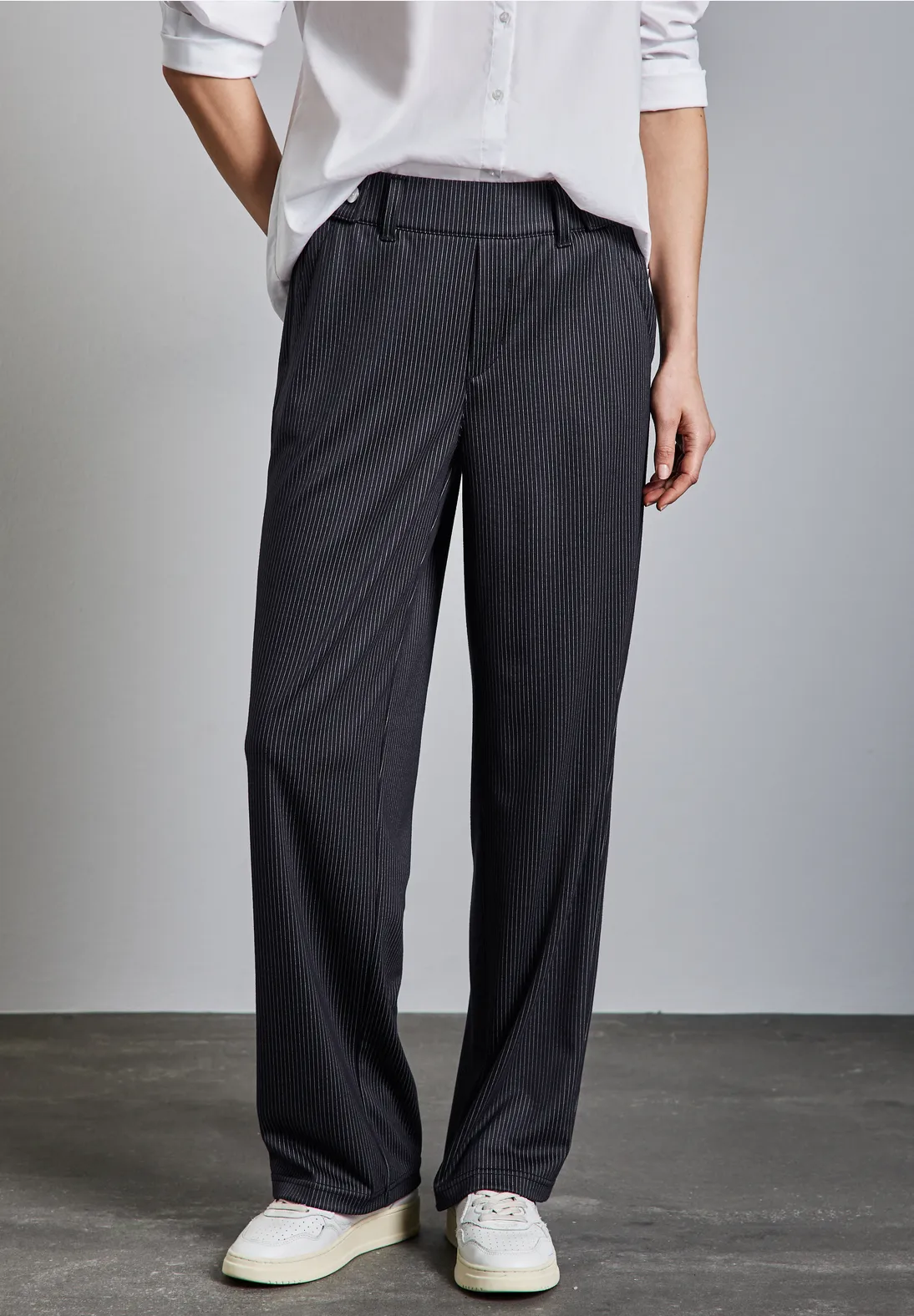 Street One Hose mit Casual Fit, hoher Taille und Straight Leg. Die Street One Hose hat Eingrifftaschen.