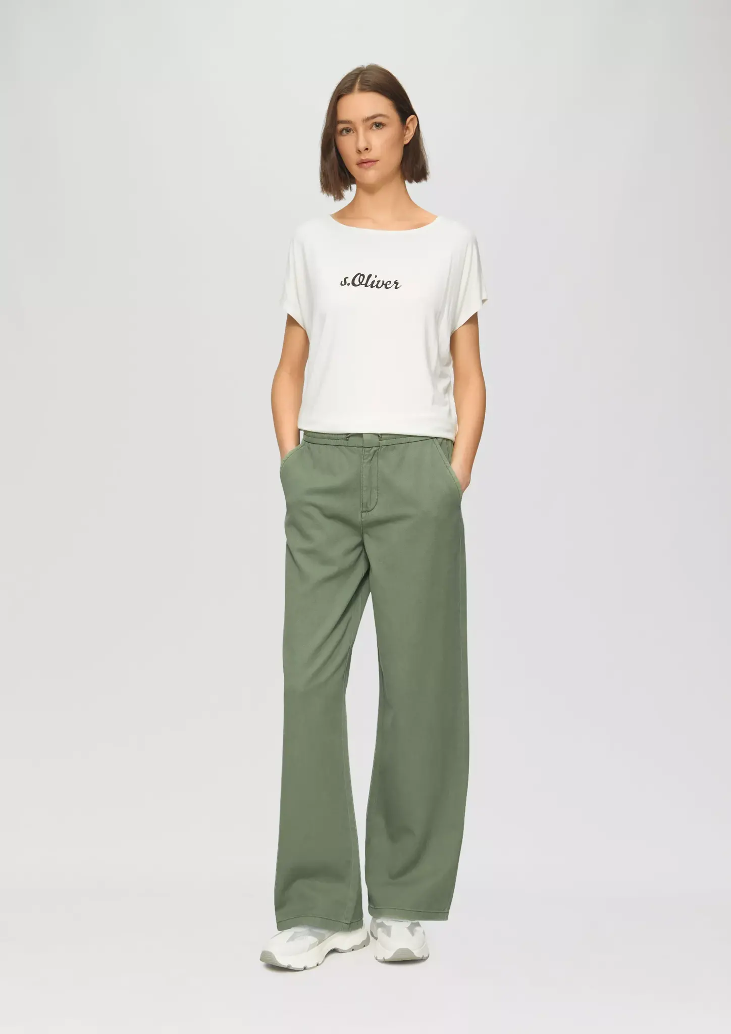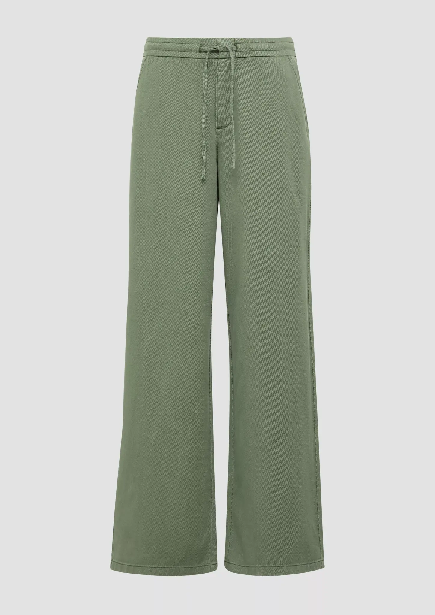 S. Oliver Hose mit lässiger Passform, hoher Taille und geradem Bein. Die S. Oliver Hose hat seitliche Eingrifftaschen und eine Elastikbund mit Tunnelzug.
