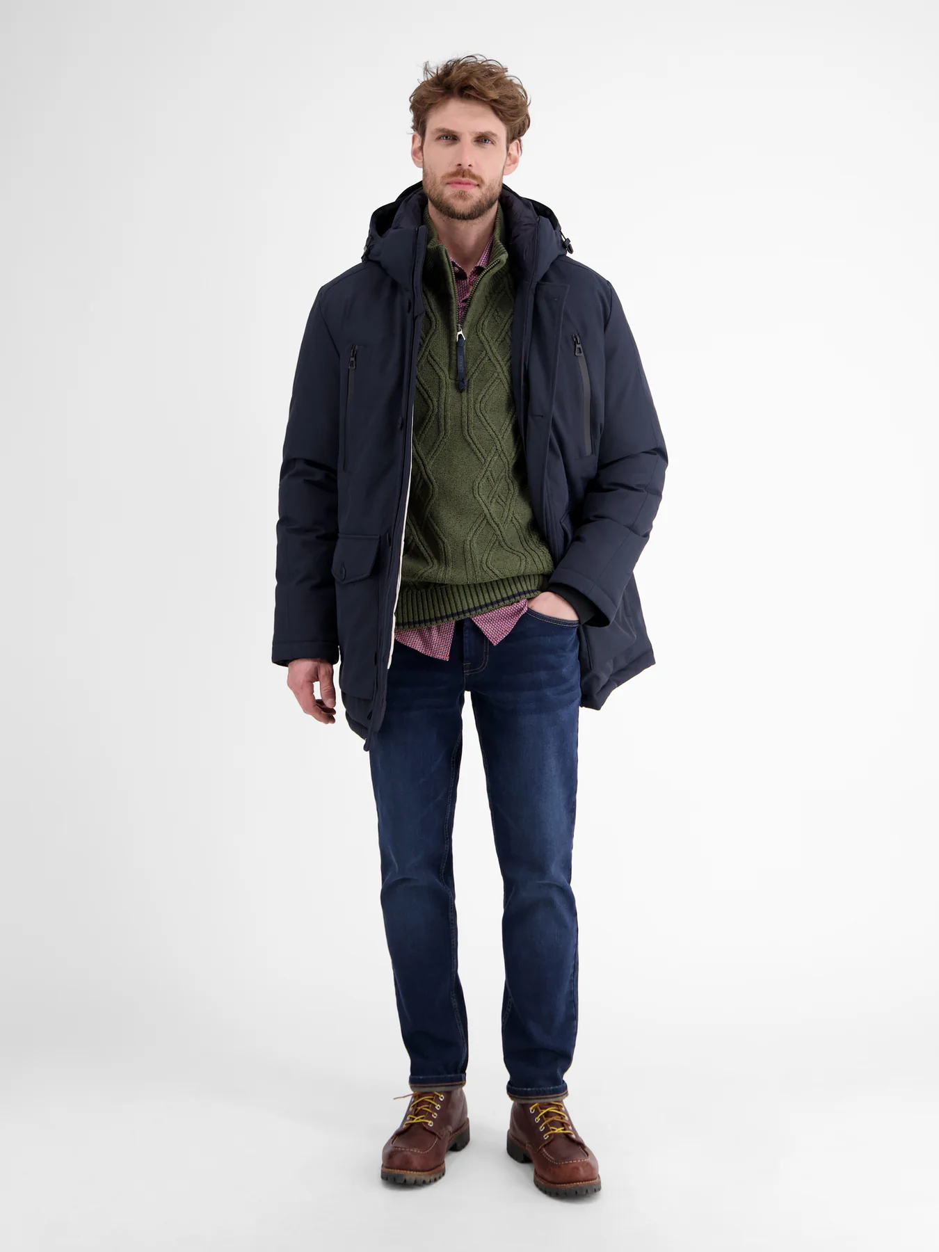 Merkmale: Hochgeschlossener Kragen mit Reißverschluss