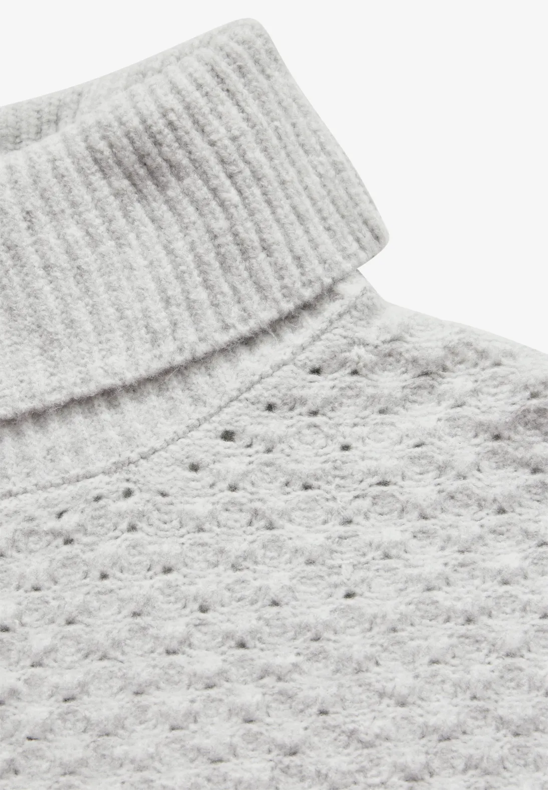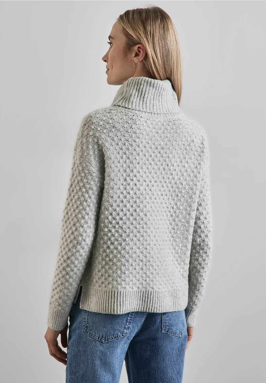 Strukturierter Street One Pullover mit langen Ärmeln, Rollkragen und Strickmuster. Dieser Street One Pullover hat seitliche Schlitze im Saum und ist aus einem weichen Materialmix mit angenehmem Stretchanteil.