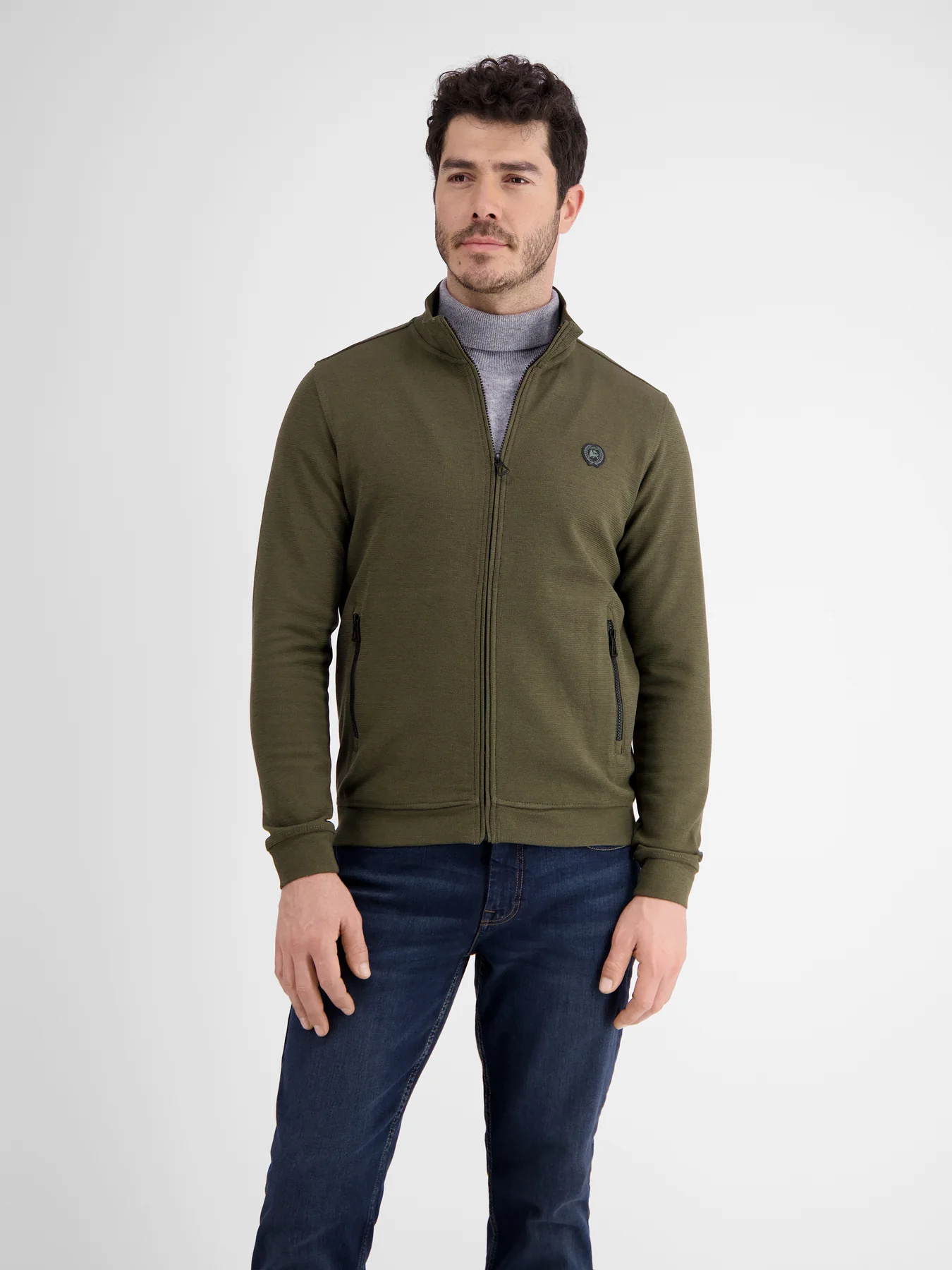 Sportliche Lerros Sweatjacke mit langen Ärmeln, Stehkragen und seitlichen Zippertaschen. Die Lerros Sweatjacke ist aus weiche Sweat-Qualität mit Struktur.