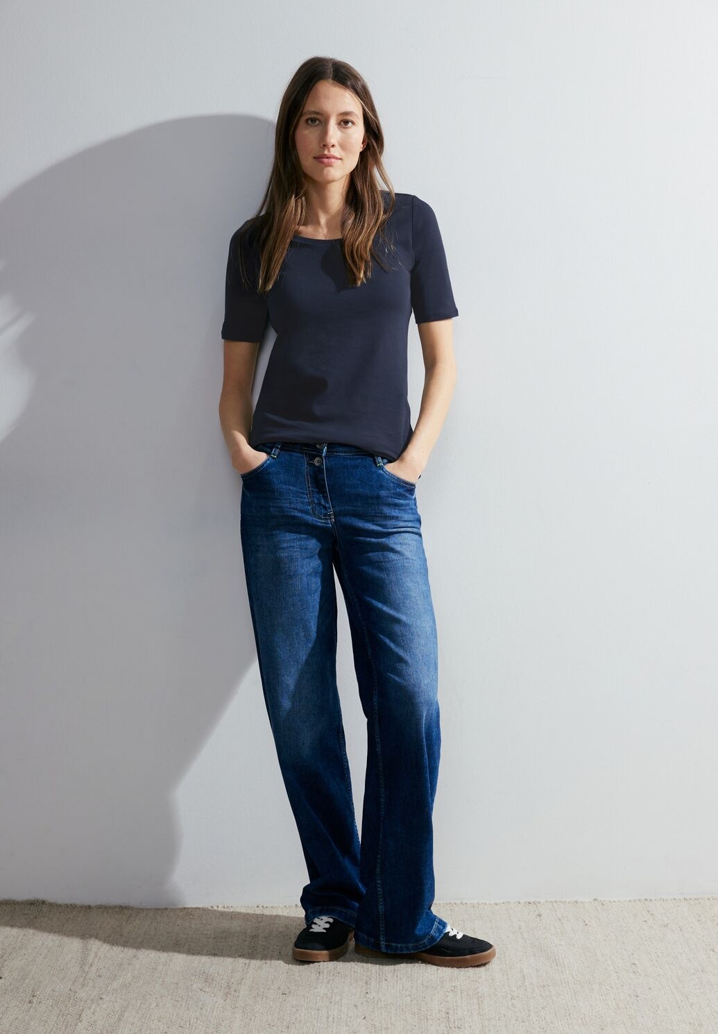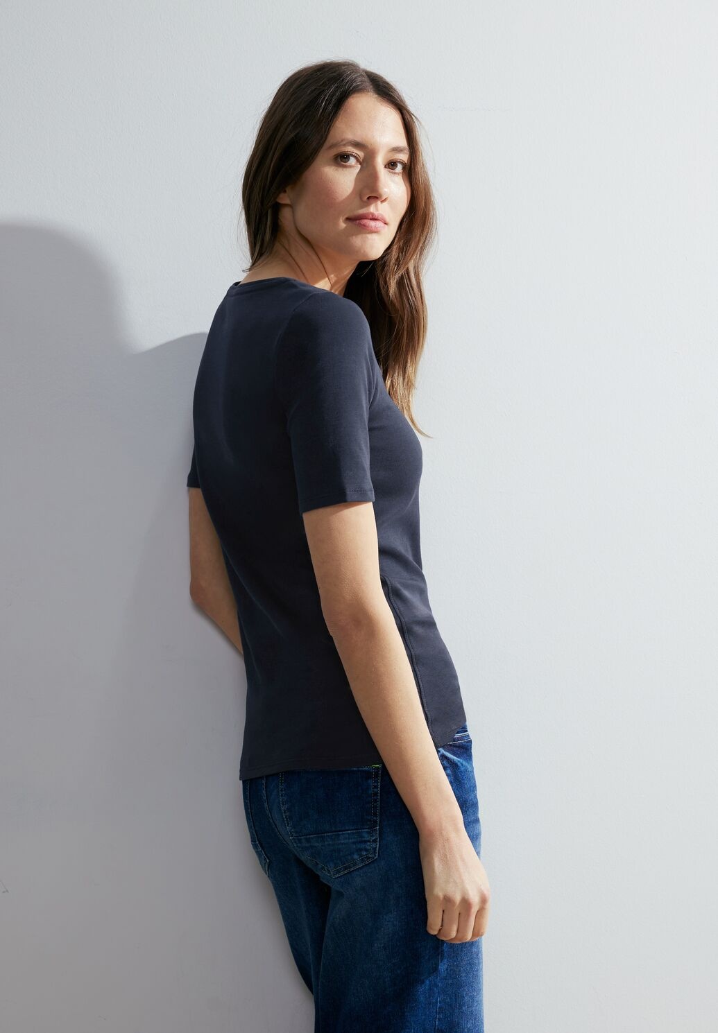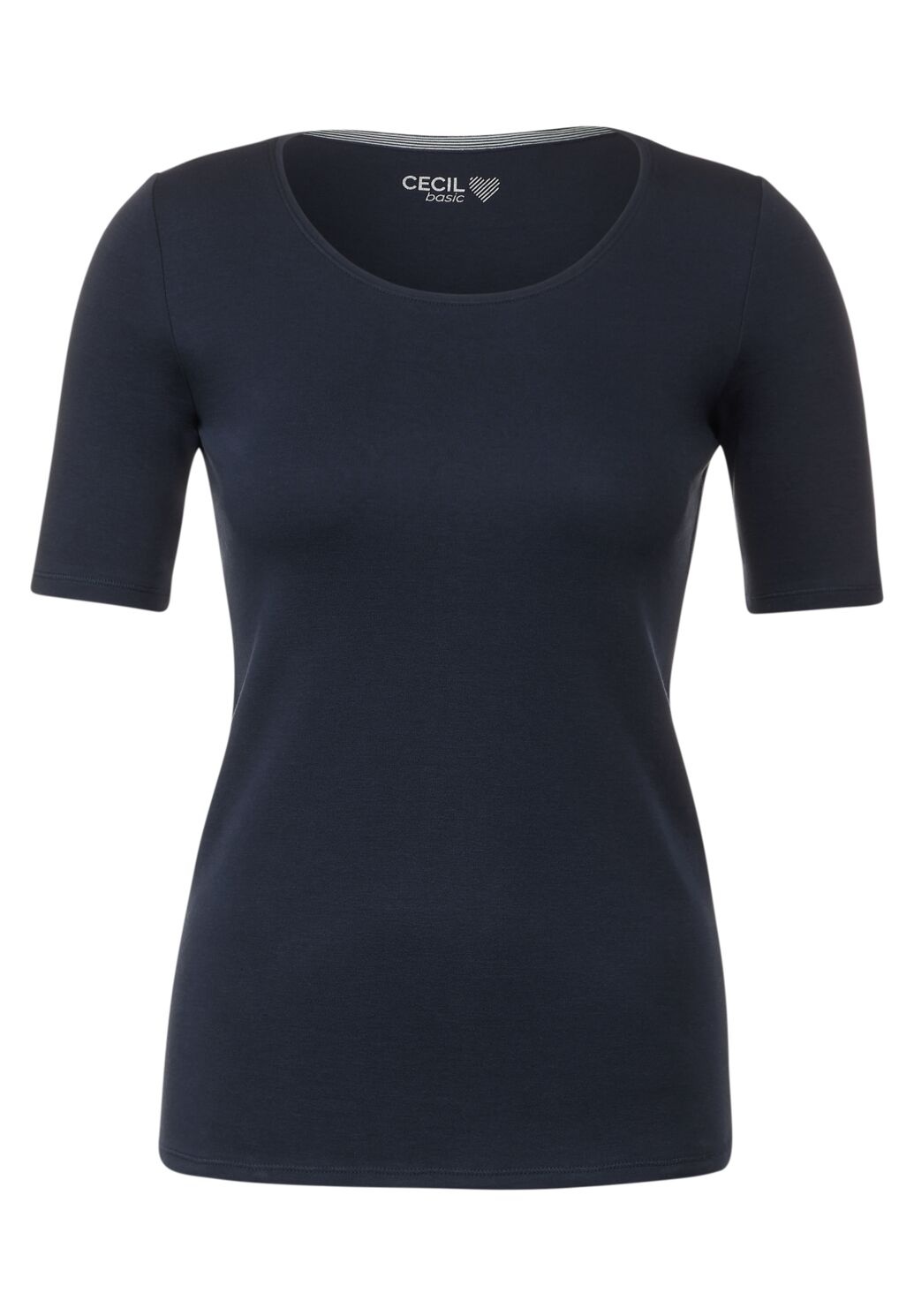 Cecil Lena. Cecil Basic Shirt mit kurzen Ärmeln und Rundhalsausschnitt. Das Cecil T-Shirt ist aus biologisch angebauter Baumwolle.