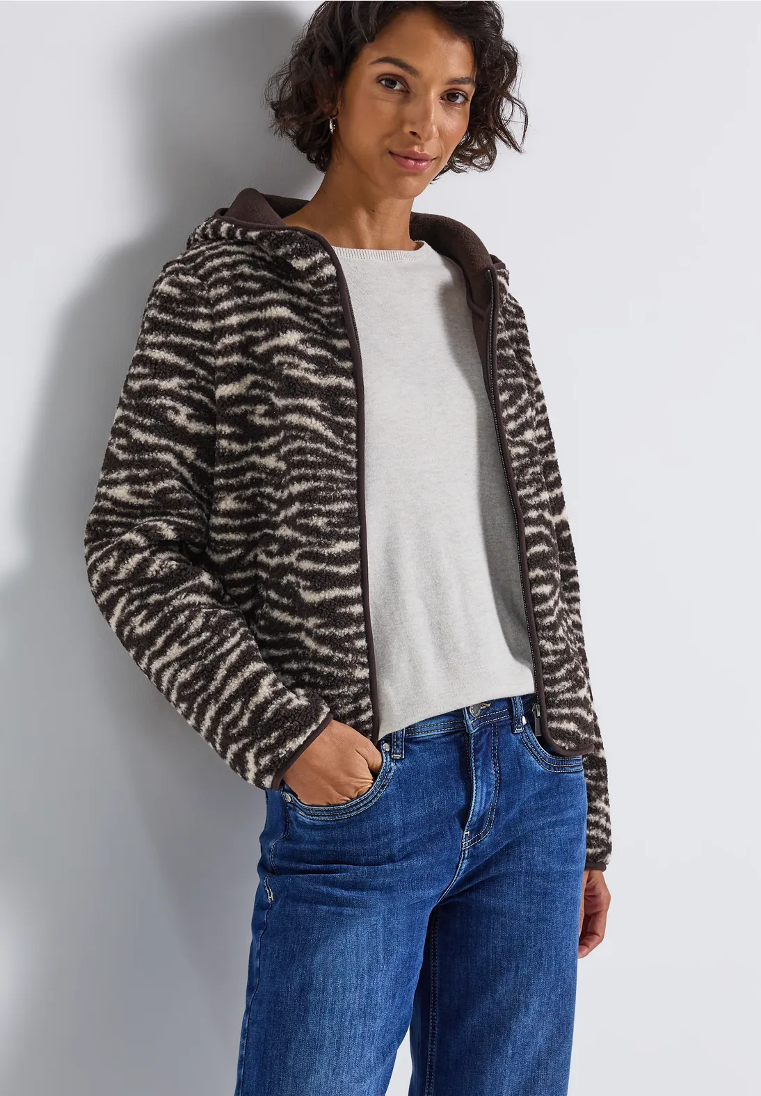 Street One Teddy-Jacke mit Kapuze, Eingrifftaschen und trendigem Animalprint. Die Street One Jacke ist aus weichem, warmem Teddystoff gefertigt.