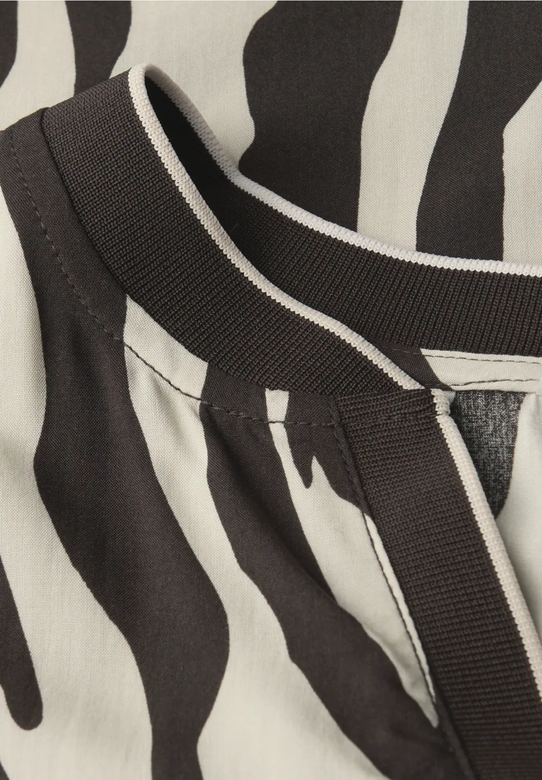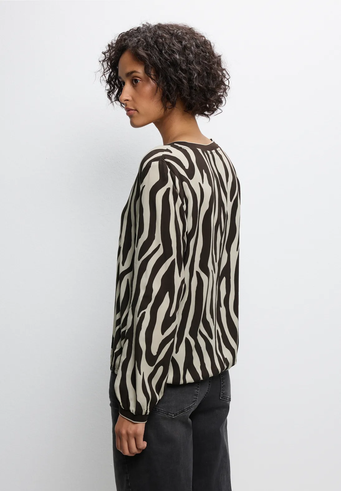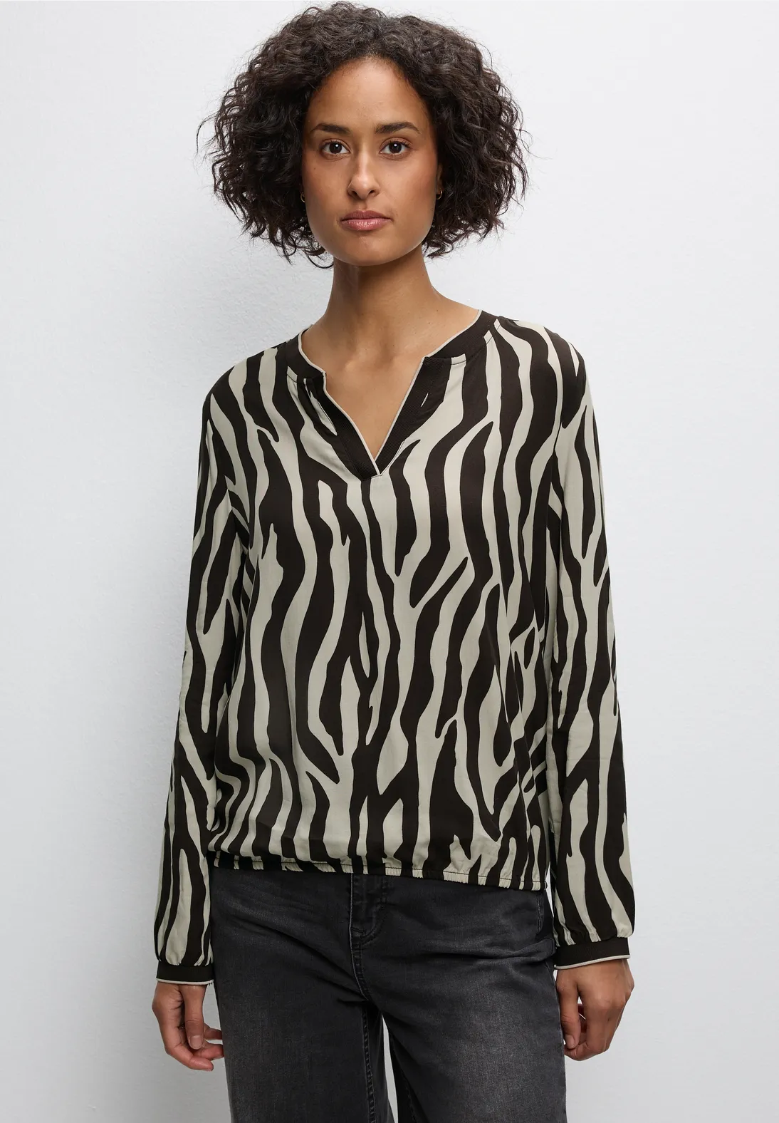 Street One Tunikabluse mit langen Ärmeln, Rundhalsausschnitt mit Schlitz und sportlichen Tape-Details. Der elastische Saum sorgt für eine entspannte Passform. Aus weicher Viskose.