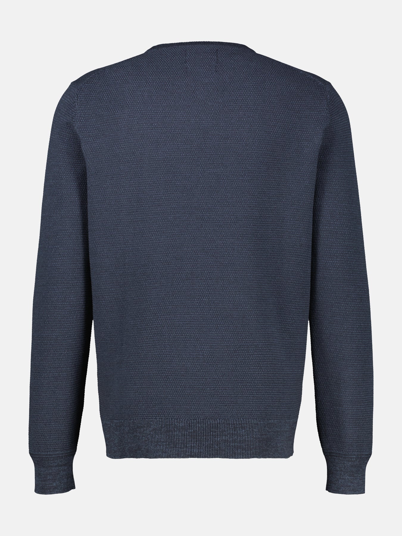 Kombinieren Sie diesen dunkelblauen Baumwollpullover mühelos mit Jeans oder Chino für einen sportlich-eleganten Look.