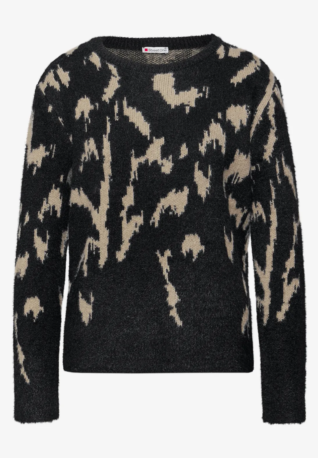 Erlebe ultimativen Komfort und Stil mit diesem Street One Damenpullover in Anthra Grey. Das weiche Flauschgarn fühlt sich angenehm auf der Haut an und bietet ein hervorragendes Tragegefühl – perfekt für jeden Tag. Das grafische Jacquardmuster verleiht dem Pullover eine moderne, feminine Note.